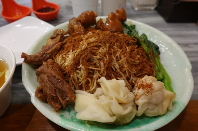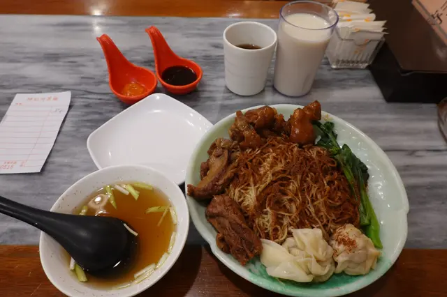 深水埗區有兩間米芝蓮雲吞麵一間係劉森記另一間係坤記今次就去左坤記先而家都無乜舖頭會整個半開放式工房公開打麵好旺角門口本身都有個咁既位但而家都好似無人打麵了個位置係長沙灣元州附近永隆街舖頭對係比排檔同棚架遮住所以唔係米芝蓮或者其他媒體介紹就真係唔會見到佢門口都貼左好多車胎人出黎門口有個開放式既打麵房可以見到麵塊同製麵機不過夜晚黎到就睇唔到用竹昇打麵了應該要日頭先會見到坤記店舖細小檯唔多係中式麵店格局入面算整齊既比麵麵棧同劉森記乾淨同埋門口見到有好多唔同類型既自家麵賣平日夜晚七點鐘入到黎唔洗等可以直入仲有全張四人檯坐就算需要搭檯都唔會太迫檯面有辣油調味坐低有杯熱茶送過黎唔洗茶錢亦都無服務費坤記其中一個特色就係勁多餐牌睇完真係頭都痛埋而且望落好多都係差唔多係無可能睇得明同計到邊樣叫法最著數大概只可以當佢蝦子撈麵55加餸加10蚊咁樣睇法同麵麵棧對比係貴些少既咁所以我今次叫左富貴撈麵要85蚊不過佢除左有茶有特別名既幾餸麵叫做係套餐會有杯野飲或者油菜送我係揀左豆漿富貴撈麵係四餸黎有蝦子牛腩豬手雲吞另外有蠔油同辣醬各一羹有放骨既碟撈都都碗一乾三濕個賣相都算唔錯既但之後無事做繼續睇menu其實仲有個90蚊既鎮店蝦籽撈麵係有埋水餃即係5餸一次就可以試晒所有野但當時睇唔到所以我係染左既雖然餸多但豬手牛腩都係比較細件仲有雲吞都得兩粒蝦籽感覺上都比起麵麵棧少唔可以撈暈晒成個麵所以好多麵食到都係未有味既亦都唔夠香真係要再加蠔油先夠味麵條整體唔夠爽口感覺係比較重身個湯有些少蝦籽但有少少那唯一比較好食都係件雲吞係實淨足料另外有貓店長可以L整體唔係難食既不過就真係未夠好食至少同街坊店麵麵棧都唔夠比而且仲要比較貴85蚊收八達通臨前送左張現金券現場都聽到有人會用同埋可能麵既份量多少少仲有杯豆漿所以都幾飽肚佢地雲吞唔差我諗水餃都係好既下次可以唔洗叫豬手同牛腩服務都OK既地點係長沙灣站附近都算方便點都舒服過同區劉森記如果經過開口痕都可以試下但就唔需要專程黎食既水平…查看更多