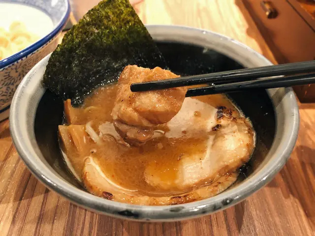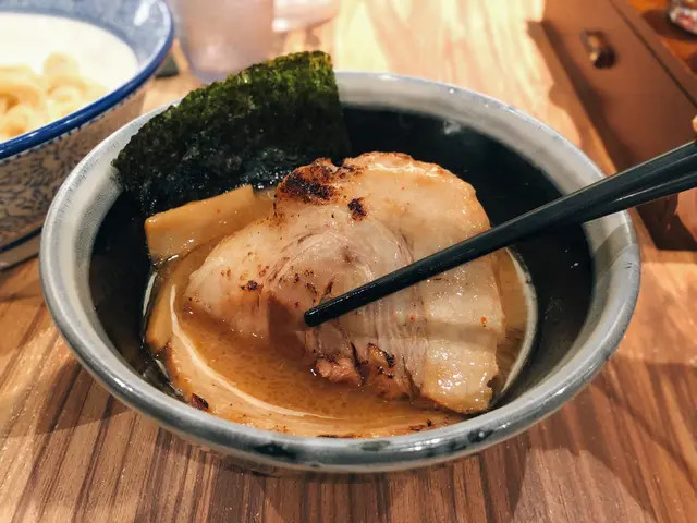 突然間想食沾麵 屯門又冇咩沾麵店一搵就搵到呢間身處Aeon入去嘅餐廳有拉麵、沾麵、油麵同混麵價錢由$62-88不等 唔使加一大門叉燒沾麵 ($88)賣相唔錯 沾麵湯幾濃郁入面有2-3塊大叉燒同竹筍 叉燒偏肥枱上面有教食法 最後可以落木魚湯飲埋個湯但個湯頗油又偏咸 飲埋第二朝應該勁腫🤣不過沾麵粗度係我鐘意嘅粗度而家幾彈牙 幾掛麵 值得一讚👍🏼大門叉燒拉麵 ($85)呢個賣相吸引d 有3大塊叉燒👀湯底偏向似醬油湯底 比沾麵湯淡d其他同沾麵一模一樣🤣如果係屯門想食拉麵可以一試😂…查看更多