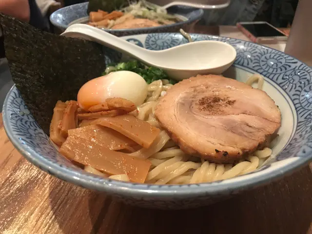 大門拉麵$65湯底好非常濃郁,麵底係用粗油麵,食落好煙靭充滿彈性,叉燒肥瘦適中,仲有蔥粒、粗切筍條、紫菜,提升拉麵嘅味道!大門沾麵$75夾少少麵浸入湯入面,令湯汁黏滿麵條表面,慢慢食。食晒啲麵之後仲淨返啲沾麵湯,加上湯仲可以就咁當熱湯飲。重口味者必點!…查看更多