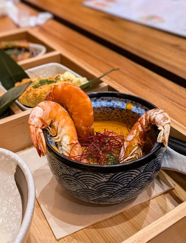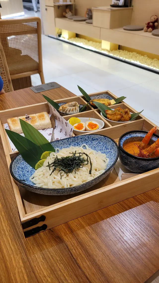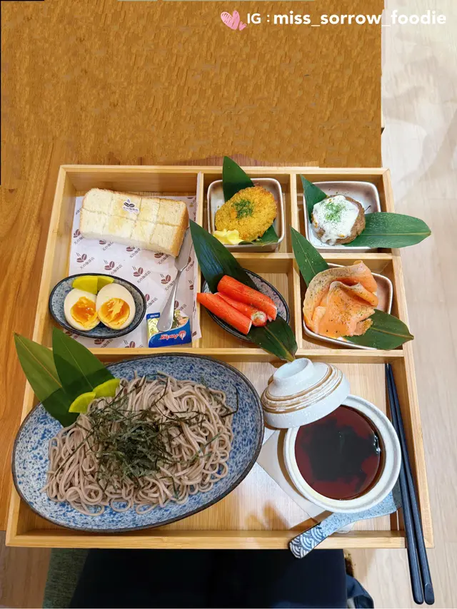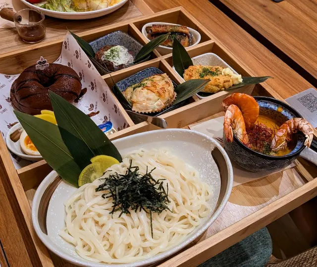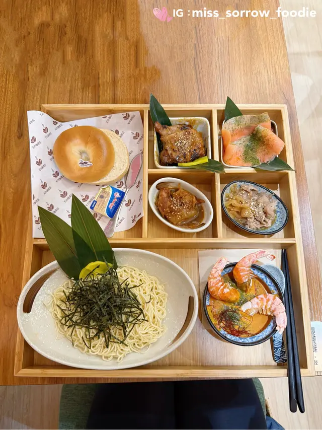 呢間餐廳融合精緻日本料理同特包西式咖啡店嘅概念☕️最受歡迎係招牌五段定食,可以自己配搭副菜、主食、日料、飲品、甜品,以木製餐盒奉上,超有儀式感🍱💗天の五段定食晚餐($167)・溏心蛋+漬物+厚吐司配牛油湯種厚吐司烘至外表酥脆,內裡鬆軟,配搭牛油係絕配🍞;溏心蛋半熟流心🥚;漬物方面有醃黃蘿蔔🥕・濃厚奶油海老湯日式拉麵濃厚奶油海老湯真係超濃蝦味,配搭幼身日式拉麵,好似沾麵咁食,非常掛湯,碗邊仲掛住三隻爽口彈牙嘅大蝦🦐・和風牛肉+ 梅酒日式豬軟骨+ 柚子炭燒雞扒+ 煙三文魚和風牛肉就係經典日式汁煮洋蔥肥牛,醬汁香甜🧅;梅酒日式豬軟骨炆得軟腍鬆化,軟骨位好似啫喱咁🍖;柚子炭燒雞扒好嫩滑入味,醬汁味道就係日式照燒汁🐔;煙三文魚大片厚切,帶煙燻鹹鮮🐟・迷你北海道豆乳年糕提拉米蘇以馬加邦尼芝士、手指餅同黃豆粉相間而成嘅提拉米蘇,食落豆香味濃,中間仲有煙韌軟糯嘅年糕作夾心🍡・TINE 挪威焦糖芝士瀑布拿鐵店員即場係凍咖啡拿鐵,將TINE挪威焦糖芝士刨成細絲,好似一座芝士小瀑布咁,再加上焦糖糖漿同焦糖脆脆,羊奶芝士嘅濃郁、焦糖甜味同咖啡嘅醇厚回甘完美融合,鹹甜交融🧀💗天の五段定食晚餐($139)・溏心蛋+漬物+原味貝果配牛油(+$8)Bagel口感特別紮實Q韌,簡單配搭牛油已經好好味🥯;同樣配搭半熟溏心蛋同醃黃蘿蔔漬物🥙・冷鰹魚湯十割蕎麥麵冰涼蕎麥麵沾上鰹魚湯簡直係絕配,好啱哂夏天食🍜・北海道南瓜薯餅+皇帝蟹棒肉+雙重芝士漢堡扒+煙三文魚北海道南瓜薯餅炸微金黃香脆,入面係香甜綿密嘅南瓜蓉🎃;皇帝蟹棒肉有足足3大條🦀;雙重芝士漢堡扒厚實鬆軟,表面放上芝士焗融外,入面仲有芝士流心餡,非常邪惡🧀;煙三文魚大片厚切,帶煙燻鹹鮮🐟・迷你草莓配海鹽芝士奶蓋提拉米蘇以馬加邦尼芝士、手指餅同海鹽芝士奶蓋相間而成嘅提拉米蘇,再以新鮮士多啤利點綴,相對輕盈清新🍓・天の富士山梳打配牛乳雪糕藍色梳打配搭一層厚忌廉同奶香濃郁嘅北海道牛乳雪糕,好似富士山頂覆蓋白雪,超級打卡🗻💗爆量300克牛排湯種三文治・田園沙拉($158)厚切牛扒切開仲係粉嫩肉芯,肉質柔軟有嚼勁,非常Juicy🥩加上蜜糖芥末同日式燒肉醬 ,配埋烤至外脆內軟嘅湯種麵包,啖啖肉超滿足🥪💗三重開心果脆脆拿鐵 (+$24)醇厚絲滑咖啡拿鐵加入開心果醬、開心果奶蓋同開心果碎 ,增添一份濃郁開心果嘅堅果香💚💗招牌淺草炙燒軟心巴斯克蛋糕 (+$58)巴斯克芝士蛋糕每日純手工限量製作,用火槍燒上一層香脆嘅焦糖,內餡幼滑軟心,芝士味香濃,甜而不膩🍰💗天の經典水果茶 ($56)熱水果茶以茶壺奉上,放入香橙、藍莓、士多啤梨等水果,飲落除咗有茶嘅清香,仲有酸甜嘅果香🍹…查看更多
