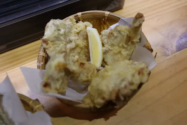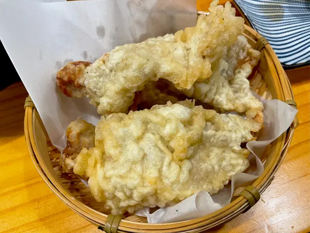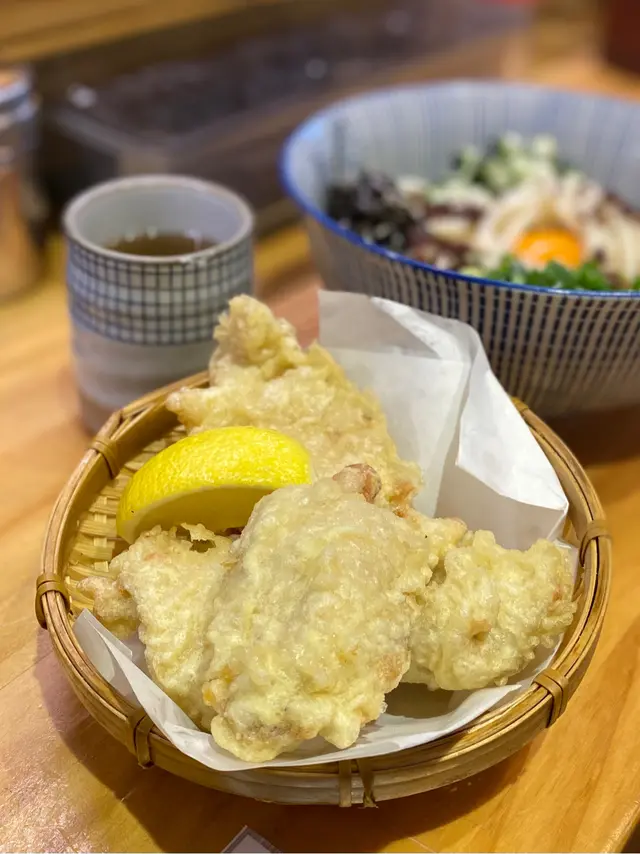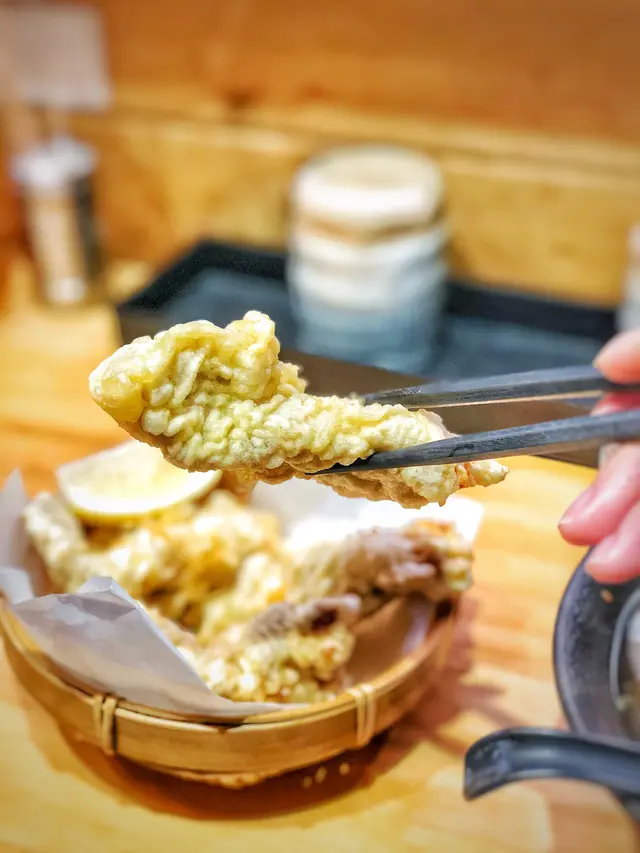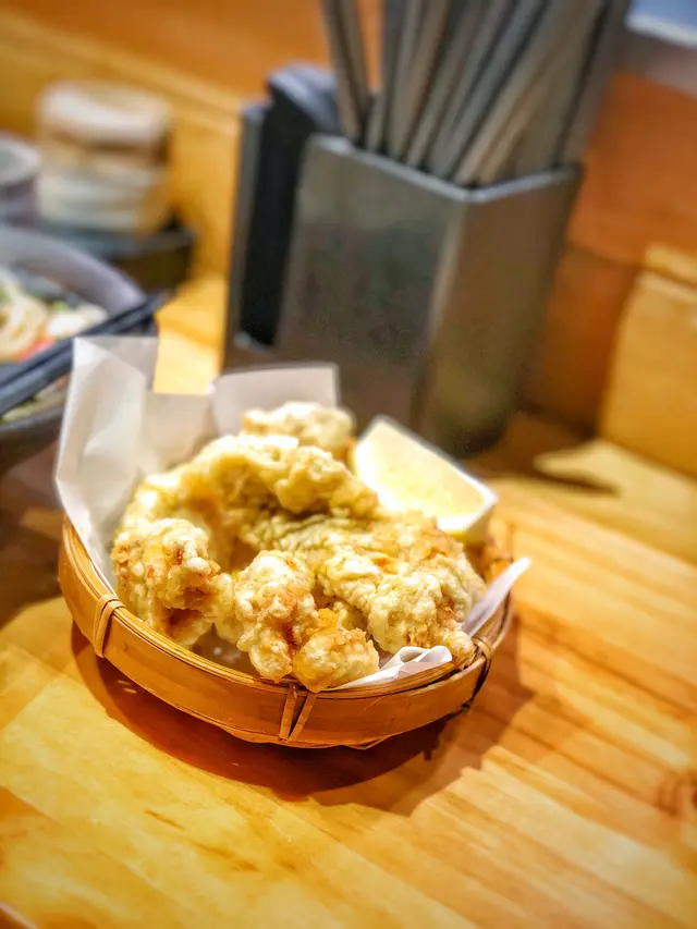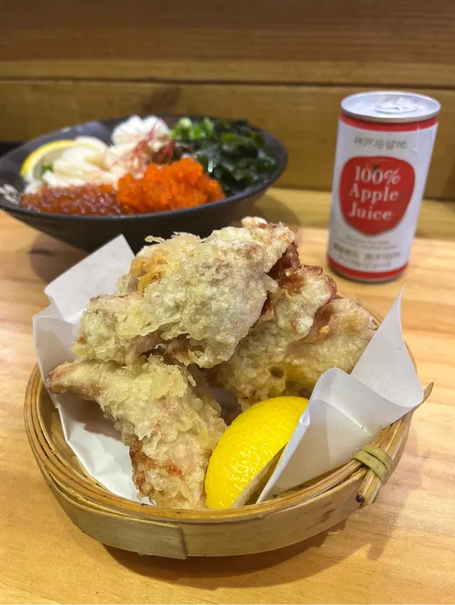 再另外叫了天婦羅雞件&新出嘅鹿兒島紫薯甘栗餅,天婦羅雞件外層鬆脆,粉漿夠薄,雞塊夠嫩夠juice,係我最鍾意嘅炸雞質感;至於新出嘅鹿兒島紫薯甘栗餅,紫薯嘅甜味唔會搶走栗子嘅味道,栗子是一粒粒的,兩者混合在一起,真不同平時食嘅薯餅,紫薯我是一般的,但這個可以再encore