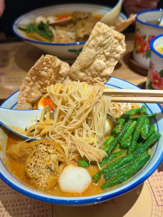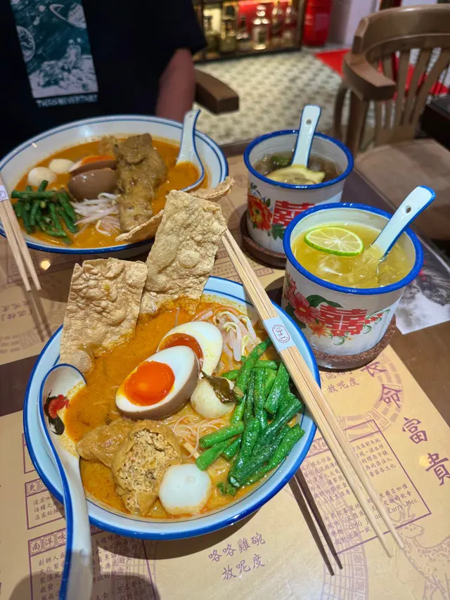 來自馬來西亞「緊張咖喱麵」進駐深水埗,港鐵行6分鐘就到。開業僅僅一個月,已經吸引唔少明星光顧,繁忙時間更大排長龍,火速爆紅。成間舖頭瀰漫住吉隆坡街頭老店風情,門口有大大個「緊張」招牌超搶眼📸每個角落都係打卡位,難怪咁多潮人專程去食!▪️ 淨混桔特飲 🍊 $33梅桔仔水,清甜解膩,店員會提你要拮拮啲桔再攪勻先飲,跟住做真係好飲啲▪️ 古早咖喱雞撈麵 🍗 $88咖喱汁濃郁香辣,幼麵彈牙掛汁,雞脾入味嫩滑,薄脆香口。重口味之選,食食吓有點膩但好味!▪️ 好卵!緊張咖喱麵 🍜 $58油麵加米粉雙拼,湯底相對較淡,油麵有點淋唔太掛汁,糖心蛋流心效果唔錯,魚蛋同豆角普通食完成個口都係咖喱香,但真係幾滯下,叫杯特飲就剛剛好,整體而言值得一試…查看更多