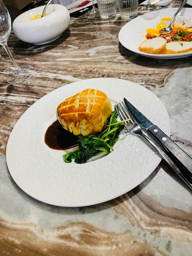 Pizza芝士極多,比街外既夏威夷pizza更好食,但最推一定係威靈頓牛柳,但皮好蘇脆,肉質一啲都唔”孩”。