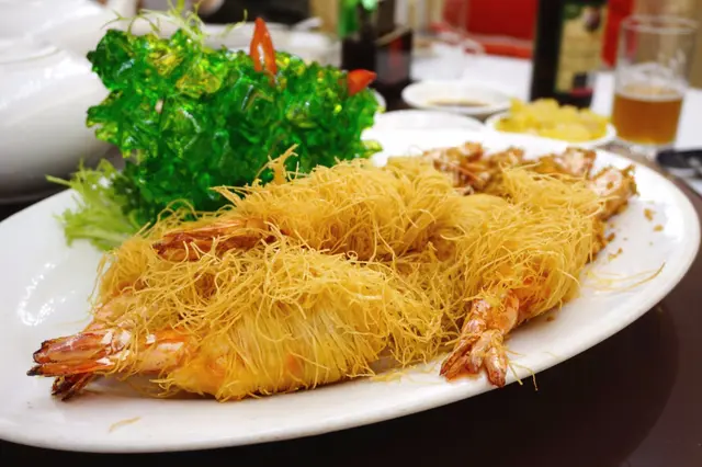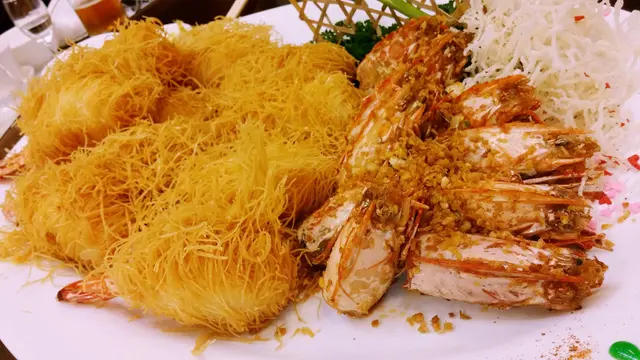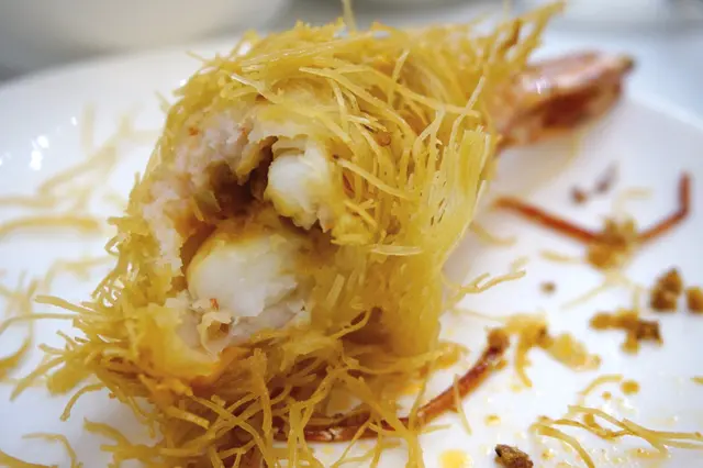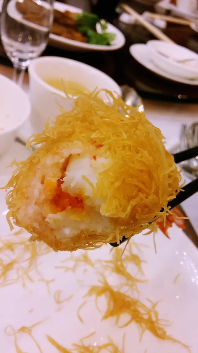 今個湯品的是荷包白鱔湯,湯底的胡椒下得夠而味濃,荷包鱔肥美油份足,喝完身體也會溫暖起來。:)小菜中的子母龍鬚蝦,中蝦加上蝦籽和蝦膠,而蝦膠是以蝦籽蝦茸與肥豬肉製作出來,再加幼麵絲去炸香,形成龍鬚效果,是道很有心思的手工菜。入口吃著蝦肉的爽彈和蝦膠的鮮甜,還有很好的口感,真的要好好地享受它的味道。