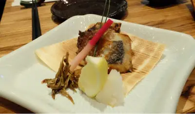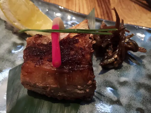 正!和牛味濃郁,內裡包著大量炸蔥蒜,味道層次突出,一口咬落去,先感受到和牛肉汁的滋味,稍微咀嚼後,炸蔥蒜的香脆便從人口腔內回甘,層次令人難望。季節燒魚呑拿魚的下巴,小女向來不喜愛吃煎/ 炸/燒魚的,沒有太多評價啦!只覺得師傅技術不俗,燒得外面脆卜卜但肉質依然Juicy .....特色時令壽司五點 : 立魚、金目鯛、赤身、赤目及北海道馬糞海膽。