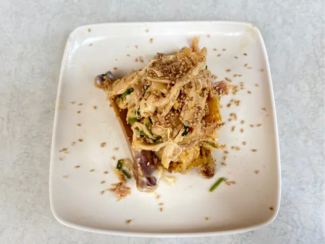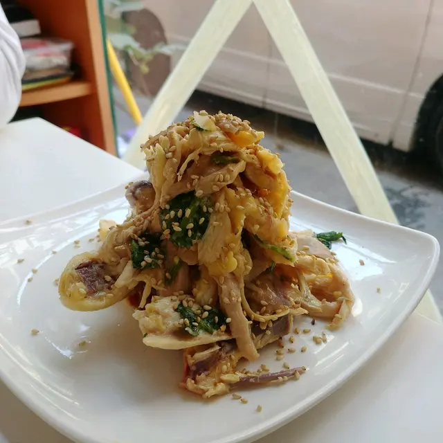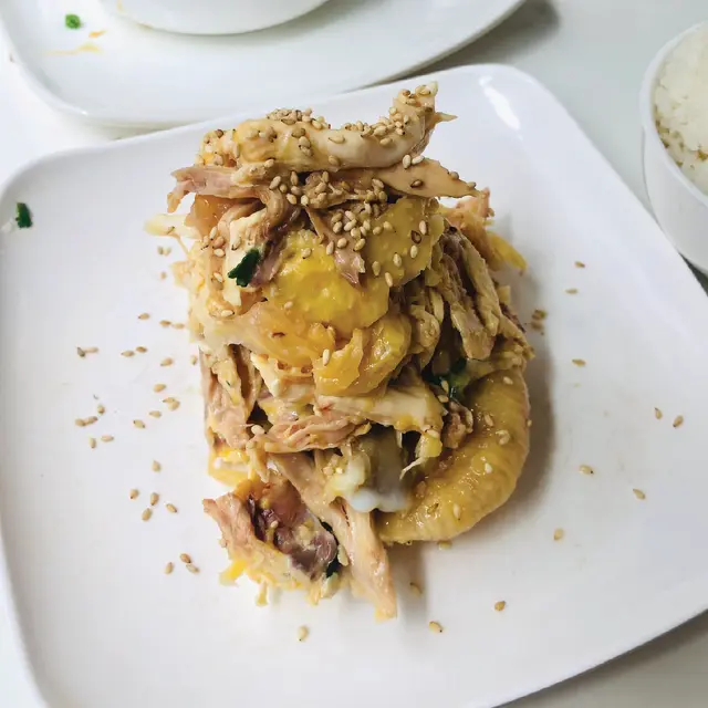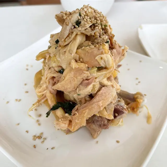 客家鹽焗手撕雞,雞肉一絲絲,質地好幼滑,唔太食到鹽焗味,味道係有陣麻油香同芫荽香味。份量唔算好多,不過兩個人食,份量剛剛好。