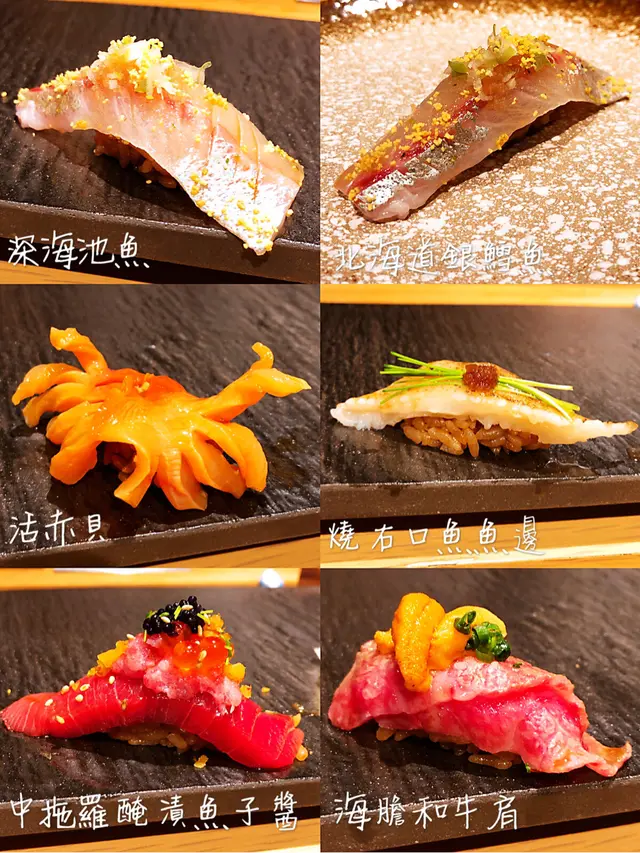 環境都ok,清潔衞生,光線充足,坐吧枱,望住師傅整野食,介紹每樣食物,過程尚算流暢,係一開始上前菜waiter經驗唔多,上菜後冇介紹,主動問佢但答錯。✨味道80分,環境79分,服務70分。.🔷竹 ($1380)先付3點,刺身6點,一品料理,壽司6貫,御碗,甘味🔷梅($1080)先付3點,壽司10貫,一品料理,二櫻海老丼御碗,甘味.🔸先付3點胡麻豆腐 ,蟹肉紫菜天婦羅 ,青瓜芥末八爪魚.🔸刺身6點•沙鰈魚:淡味魚,食肉身先 ,口感爽。燒左既係魚邊,好有魚油香,口感滑身。•北海道珍蠔:超肥美,手掌咁大隻,好鮮甜。•劍魚腩:查左柚子胡椒汁,酸酸地,微辣,淡味魚。•新鮮北寄貝:可點岩鹽,落左好多檸檬汁,但食落個人覺得腥。•海膽·松葉蟹·三文魚籽:海膽好甜,蟹肉味濃,三文魚籽清甜。•秋刀魚:好特別用薑蔥鼓油,赤身魚,較濃味。另外用魚肉用紫菜包埋黃蘿蔔同蔥,味道濃。•燒白子:係魚精,口感豐盈,香潤,食得多有點滯。•拖羅:超正,厚肉,落左岩鹽鹹鹹地,底下放左紫蘇葉,令整體幾清香。.🔸壽司10貫沙鰈魚,八爪魚,鰤魚,白子,秋刀魚,中拖羅,赤貝,大拖羅,北海道赤海膽,白蝦。.🔸壽司6貫深海池魚,赤蝦,銀鱈魚口感細滑 ,大拖羅,海膽,右口魚邊好有魚油香。.🔸一品料理•黑松露海膽蒸蛋:蛋好滑,表面放黑松露醬同海膽。•蟹膏味噌燒大蝦:蝦肉質麻麻,上面蓋左蟹膏,整體一般。.🔸二櫻海老丼:櫻花蝦炸過,超香口,整體好惹味。.🔸御碗魚湯,魚味濃,口感細滑,落左豆腐同菇。.🔸甘味•柿:好甜,爽口。•綠茶蕨餅:煙煙韌韌,•青檸啫喱:酸酸甜甜,青檸味濃郁。…查看更多