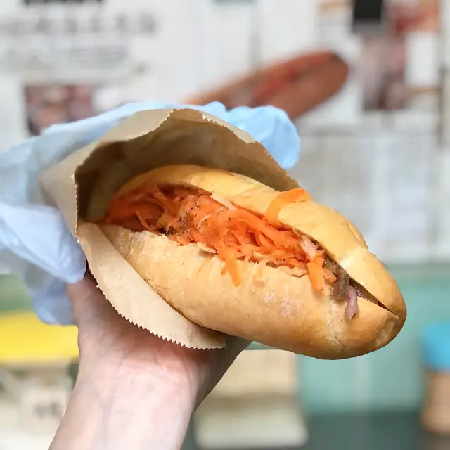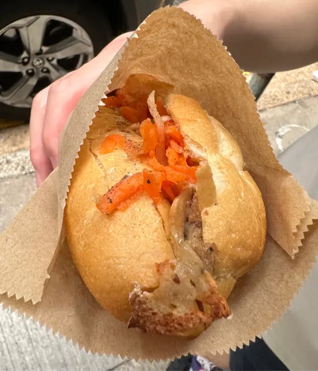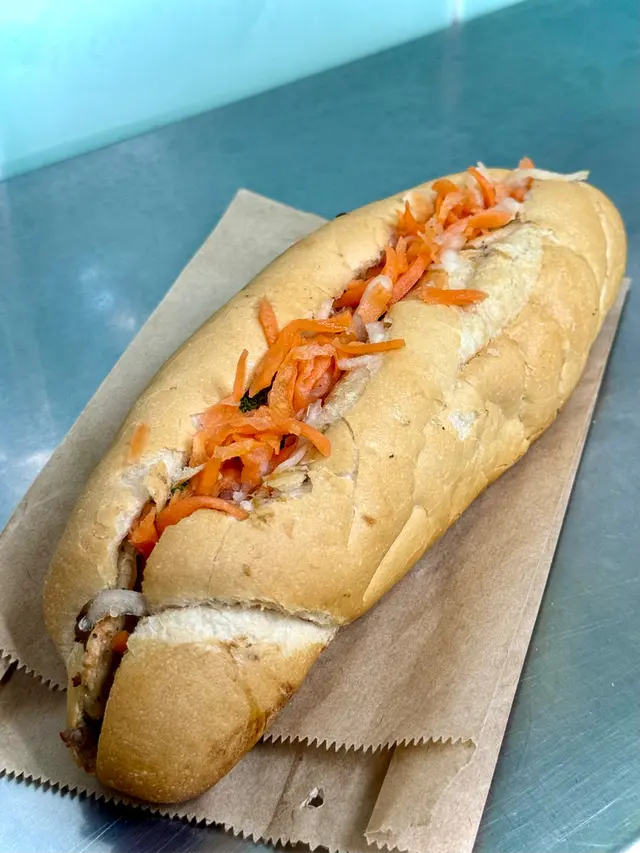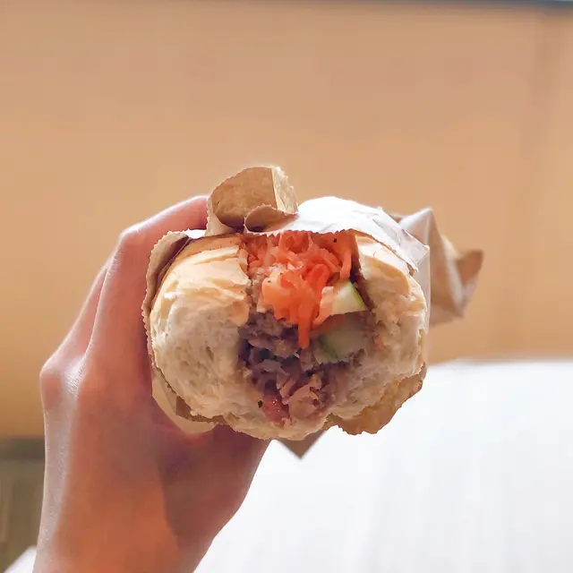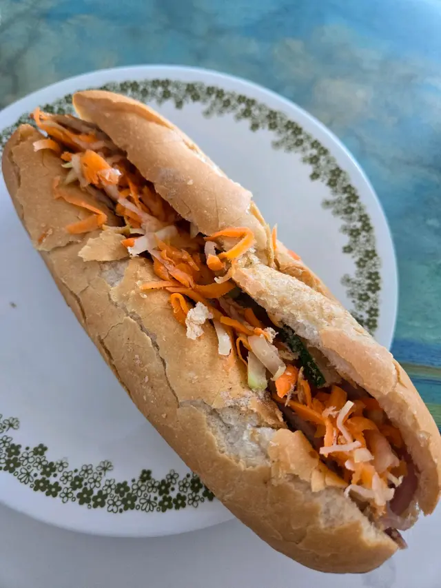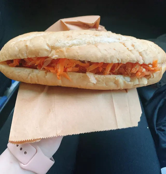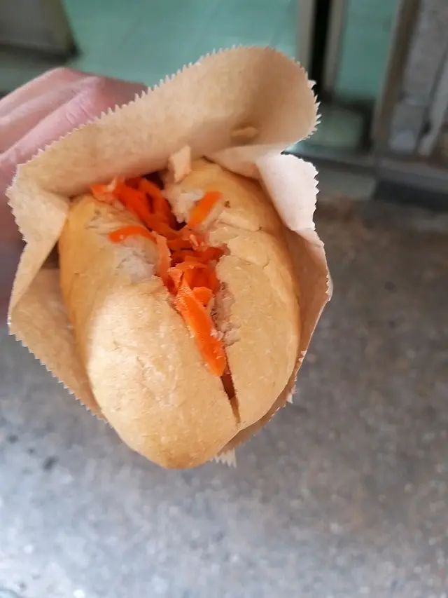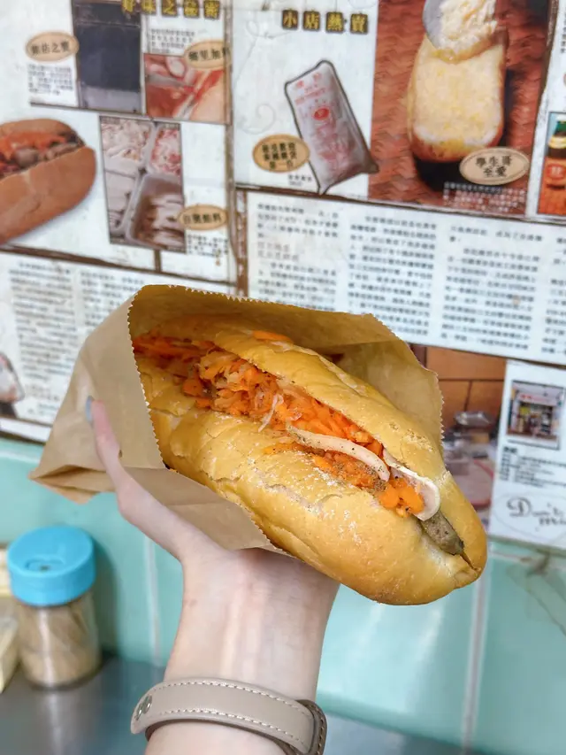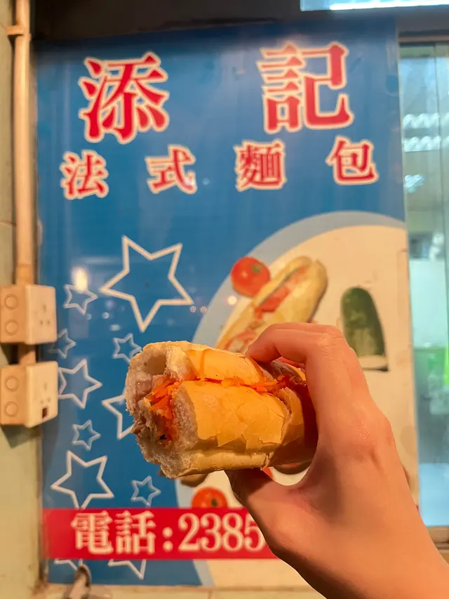 我們於19/7(五)約下午三點左右去到餐廳,內裡已經有2位客人,小店光猛,電視播放CCTV,伯伯整梗法包🥖。我們叫了小法包($46),伯伯就立即放法包入焗爐,之後再放餡料,例如:青瓜絲🥒,紅蘿蔔絲🥕,扎肉,腩肉,咸豬手等等。法包好脆口,餡料就室溫,沒有什麼調味,清清地,不過不失。👌🏻雖然係小法包,都叫抵食夾大件。之後亦有街坊入嚟外賣大法包,伯伯又問屋企有冇焗爐等,只有在小店才能體驗到人情味。