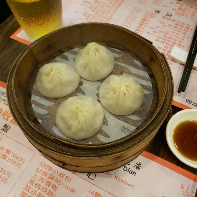 我們一進去就點了小籠包,然後紅油抄手,還有一個上海排骨面。 茶位費只是2塊錢,然後茶也蠻好喝的, 店員都蠻主動去幫我們去添茶。 這裡所有吃的都是新鮮去現做的,所以所有食品都挺熱的。小籠包的外皮是很薄的,可是它不是很容易一弄就破掉那種,所以吃起來很容易喝到湯汁,肉的味道不如鼎泰豐般濃,但也不錯。紅油抄手,因為很辣所以我沒有吃很多。上海排骨麵,這個是一個套餐來的,它是配一個面,它的排骨是超級大份的,所以旁邊的日本人看到我們點這個他們自己也點了。不知道為什麼那麼多日本人來吃它呢?在香港吃上海菜但周邊都是日本人。 🤭🤭最後點這一個我很想吃的甜點 豆沙鍋餅,可是在等待的時候就看到別桌上那個高力流沙球, 感覺這個很好吃。 豆沙鍋餅的豆沙如果再多一點點就好了,下次再試試吃高力流沙球吧!…查看更多