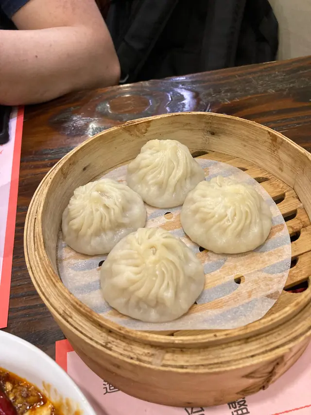 為了吃好的,又不用等太久,我們又是趁開店的時間來吃。搬了店後好了一點點,起碼不用在危險的馬路邊等位了。我們是為小籠包而來,帶孩子嘗嘗甚麼是好吃的小籠包。不用多說,肉汁多,皮薄,一口放進去,湯汁流出,絕對媲美米芝蓮幾星級的名店出品。上次跟白老鼠嘗過,已一試難忘。,底部煎至金黃色,咬下皮脆肉汁多,我們一致認為一定是孩子喜歡吃的口味,果然成為他的新寵。酸辣度適中,不會過酸也不會過辣,上次跟白老鼠配麵吃,少不免變得味淡了一點,配雲吞來吃,不但沒有影響酸辣湯的原味,反而增加了一點肉香。上海排骨麵的炸排骨很多店都做得不太認真,有些店就以一塊煎豬排來充當排骨。看看價錢要51元一碗,好像貴了一點,但看見炸排骨也40多元一塊,便推算排骨應該是這兒的精品。幸好決定嘗嘗,才知道排骨製作得如此認真。首先是排骨的厚度,絕不是薄薄的一片豬排,而是厚切的肉排。別以為肉厚就沒有味道,肉厚而入味,味道均勻。外包一層薄薄的炸粉,令肉排更香脆,真的有皮脆肉嫩的效果,我終於明白湯麵為何只值幾塊錢。上次在舊店吃過,脆而不硬,味道剛好。這次吃完全不是那種味道。…查看更多