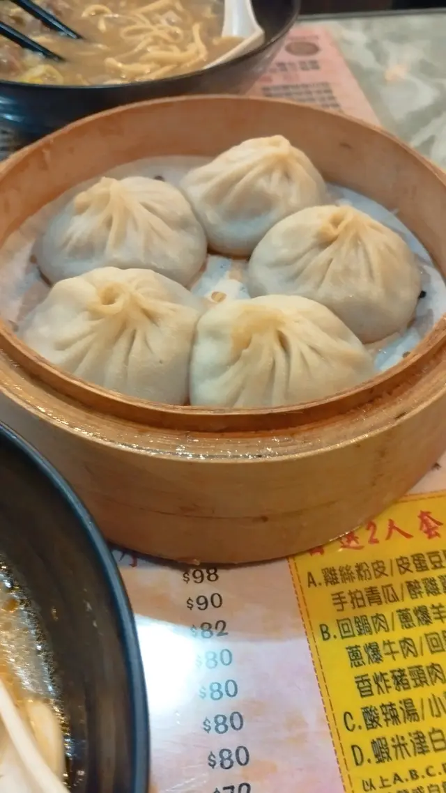 聽講呢間好受歡迎,星期六6點都要等左10分鐘左右,餐廳環境比較細,2個人坐卡位係要搭枱,張枱都有啲細。特登黎到食小籠包 ($57),一籠5個,師傅一路包一路蒸所以要稍候嘅。咬開個皮瞬間湯汁豐盈,不過整體味道未達預期驚豔,一咬啲餡有啲鬆散。以呢個價位嚟講,性價比略為普通。另外叫左個雞絲冷麵 ($58),成碗麵份量都好多,大量青瓜絲,鋪滿濃郁麻醬嘅雞絲,麵質算彈牙爽口。豬扒湯拉麵 ($58) 湯底溫和略欠層次,豬扒乾身唔算油膩,麵質軟硬適中,同冷麵都係同一種麵,純粹填肚ok。加左$10要豆漿,以為係自家製,原來唔係😂…查看更多