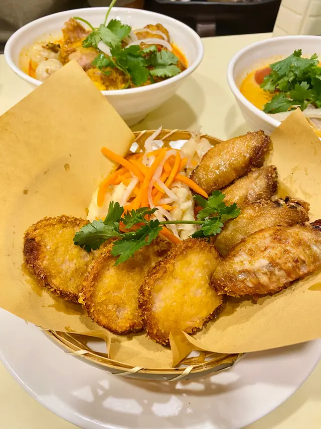今日去荃灣上堂之前想食吓泰國嘢見到尼間入邊有泰國越南嘢見到價錢又好抵,就入去試吓叫左二人餐再追加嘢。泰式滷水豬手超級淋份量有多味道好濃 必食青咖喱雞扒飯必食 雞扒加上咖喱汁撈飯勁正 咖喱好椰香生牛肉湯河粉 牛肉唔韌 個湯超好飲 我飲晒成碗 仲有河粉超多 泰式燒豬頸肉 超好食 唔硬 份量多小食拼盤 : 有泰式鳳爪 酸甜適中好食春卷入邊係芋頭 非常夾 好食上次試咗蝦餅,今次試魚餅魚餅味道係特別嘅 可以試吓但個人喜歡蝦餅多啲泰式燒雞扒 勁大塊 食唔哂😅至於泰式飲品都係偏甜見仁見智我覺得咖啡幾好飲…查看更多