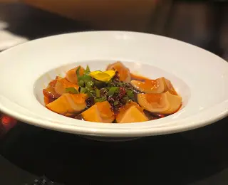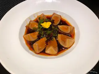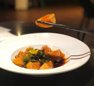 早幾日同客人係中午試過這間的食川菜的商務午餐, 回頭值很高! 今晚又回來幫襯了這棟新式樓宇是由 Savills 管理, 我們book 了7pm, 樓下大堂的職員得知我們去那間餐廳已經可以知道我們的預約資料, 令人覺得服務超貼心, 有種似VIP 會所的感覺餐廳可能都是照顧開商務客, 主要都是sofa 的雅座, 讓人坐得很舒適, 而且職員服務都很到位貼心, 忍不住給一個讚尖椒黃金皮蛋 ($98)黃金皮蛋顏色很漂亮, 看起來金黃誘人, 層次分明, 裡面的蛋黃有溏心的感覺而蛋白金黃透明, 咬下去富有彈性, 吃起來又軟彈, 口感非常好, 加上以青辣椒, 香蔥, 醋, 紅油等調味, 帶出了皮蛋的蛋香, 味道濃鬱而有回甘的感覺紅花海皇酸辣羹 ($78)四川酸辣湯的特點是酸、辣、鹹、鮮、香。最大的特點就是酸爽開胃而且所需的食材非常豐富多樣, 有蝦、帶子、豆腐、老陳醋、冬筍、保寧醋等讓這道羹湯的口感與營養提升了不少,喝起來非常舒服過癮。而最特別的是這裡的酸辣羹更加入了紅花, 帶有藥膳功效, 氣香行散, 入血分具有活血通經, 達到祛瘀止痛的功效。 茶燻樟茶鴨 – 半隻 ($208)識食一定要食這個茶燻樟茶鴨! 樟茶鴨屬燻鴨的一種, 製作很考究不是普通餐廳能食到, 因為此鴨需經醃、熏、蒸、炸四道工序, 要求嚴格! 上菜時香熱, 鴨物色澤呈金紅, 外皮酥脆而肉身內嫩, 沒有一點肥膩的感覺, 更帶有樟木和茶葉的特殊香味,不愧是四川著名菜餚! 大廚的功力很非凡! 蛋黃豆腐 ($128)鹹蛋燜燒蟹粉是咸燒的, 還加入了昂貴的厚切冬菇及海蝦, 很好吃哦菊花茶 菊花茶香氣濃鬱,提神醒腦,也具有一定的鬆弛神經、舒緩頭痛的功效。我們用膳完畢菊花茶飲了很多轉仍是很有花香! 忍不住打開茶壺, 原來裡面有半壺份量的菊花, 真的超讚呀! 對於長期對住電腦的我, 菊花茶本身就有助緩和眼睛疲勞, 忍唔住埋單了都要飲多杯…查看更多