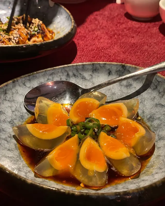 今次講一間尋晚試嘅川菜, 價錢係中高價位, 食物質素唔錯(尤其係辣子雞!), 不過我覺得有啲overpriced.1. 尖椒黃金皮蛋 $98蛋黃非常流心, 咬落好爽, 有口感q彈, 唔會軟淋淋, 有啫喱嘅感覺. 醬汁調味唔會太感, 青椒片微辣, 唔難入口. 整體配合得好好👍🏻👍🏻2. 口水雞 $148口水雞份量算多, 可惜肉唔夠滑, 同温度偏熱, 唔算係好出色嘅前菜. 味道幾辣, 唔食得太辣suggest叫少辣3. 臘味炒芥蘭$198有臘肉同臘腸, 炒得好香, 切得薄, 唔會太油膩. 芥蘭爽口唔苦, 整體唔錯4. 辣子雞 $328強烈推薦! 一上菜已經聞到超香辣味, 非常吸引. 其他地方食到嘅辣子雞好多都係辣椒多過雞好多,但呢個好唔同,雞嘅份量超足,完全對得住個價錢。而且炸得非常適中唔會太燶, 保持到雞肉嘅嫩滑. 賣相同味道都可以話係今晚嘅mvp👍🏻👍🏻👍🏻5. 水煮魚片 (海沙巴) $468魚片可以選擇桂魚或沙巴, 我地選左沙巴因為口感比較實淨同大舊, 桂魚會比較薄同滑身, 揀邊樣就各有喜好啦. 魚片好入味, 雖然大舊但都好滑, 配料都好有誠意, 好多薯粉同蓮藕. 味道方面, 可能因為我地叫少辣, 唔算好辣, 但整體都好夠味同有辣香, 要讚嘅位係油量好少, 容易入口. 唯一可惜係魚嘅數量太少, 七個人每人一至兩舊就冇晒6. 酸菜魚 (海沙巴) $468賣相好靚, 魚同樣用左沙巴. 湯底比出面其他餐廳特別, 佢唔算好濃, 但有陣陣甜味, 撈飯一流, 我自己幾中意. 咸酸菜唔太酸, 一樣係甜甜地, 爽口嘅. 配料同樣有蓮藕同薯粉, 係一味幾有特色嘅酸菜魚. 7. 百味醬蒸豚肉腩片$168好似熱食版嘅蒜泥白肉, 醬汁香濃. 腩肉切得好薄, 包埋底下嘅金菇食, 唔覺肥膩. 作為一道唔辣嘅菜係幾好嘅緩衝8. 銀牙肉絲煎黃金脆面 $148即係肉絲炒麵, 但炒得好食. 用左幼面, 炒得好脆身. 9. 熗炒包菜 $128這個就比較失望了, 包菜靚但唔夠味, 辣味不足. 有啲失色.10. 甜品 - 反沙芋Off menu潮州甜品, 有驚喜. 將芋頭先炸到脆身再加上面層嘅糖霜, 味道唔複雜但好好為這餐川菜作結.👍🏻雖然價錢唔平, 不過為左個辣子雞都有機會再黎😬推介菜: 辣子雞, 尖椒黃金皮蛋, 反沙芋…查看更多