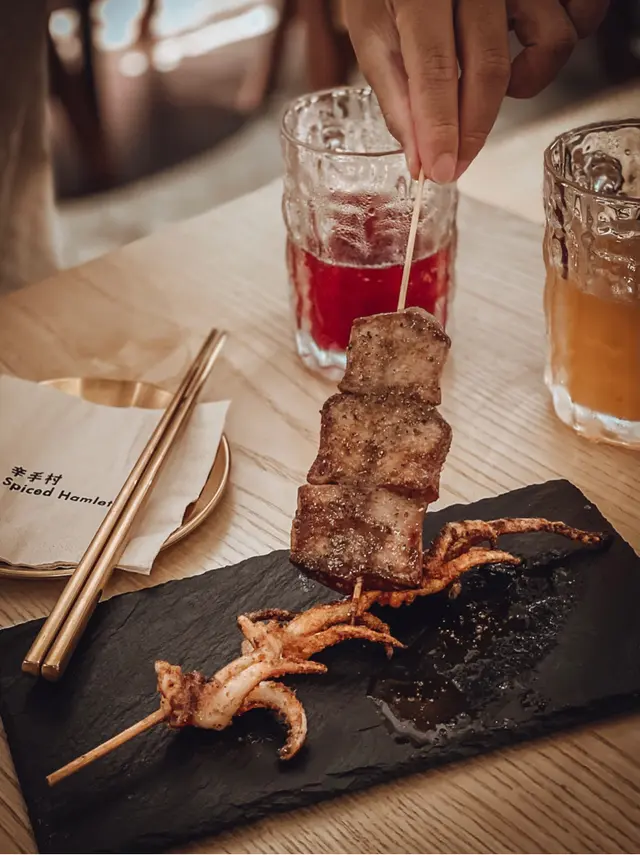 黑布街又開左間新小店( •̤ᴗ•̤ )裝潢以明亮純白色搭配木枱木凳為主門面睇落好似間cafe 其實係食川菜.ᐟ.ᐟ主打串燒&自創新派特色干鍋: 麻辣黑松露/壽喜燒味等好有創意 對於無辣不歡的我表示喜歡♡意外地好搭 唔食得好辣既都可以挑戰川菜了調味都拿捏得剛好不會過於濃味 串燒都好吃過左930仲會轉燈做酒吧~.▫唔想諗即刻食Tasting menu $498/per2♪ 韓式芝士麻辣干鍋配白飯 + $15新出口味(ᯅ̈) 舖滿芝士.葱花.芝麻粒 貌相好吸引仲有拉絲添 鹹香芝士剛好中和香濃麻辣味醬汁好惹味超好下飯的٩(๑•ㅂ•)۶本身已經有蓮藕.娃娃菜.土豆🥔還可以另選三款配料: 肥牛片.午餐肉.雞軟骨份量都好多而且好入味 最喜歡是香脆雞軟骨!♪ 串燒 (12選4)♪ 川燒秋葵 ♪ 川燒翠玉瓜加左孜然粉去燒 爽脆多汁好香口♪ 辛手雞肉軟骨棒雞肉飽滿有肉感之餘帶脆口軟骨口感好豐富 配埋秘製醬汁好滋味♪ 岩燒厚切牛舌心 + $15燒至剛好 質地軟腍彈牙帶點油脂感牛味香濃有肉汁 灑上岩鹽黑椒粒調味更香♪ 荔枝/芭樂烏龍紅茶 荔枝味道香甜 芭樂味道好特別 我一開頭飲覺得似梅味🤣 較為甘甜 兩者都唔會好甜 配埋茶底好清爽解渴♪ 柚子冰粉最後仲有甜點 冰粉口感好似啫喱般清甜 搭配酸甜的柚子蜜 清涼感剛好可以解辣( •̤ᴗ•̤ )…查看更多