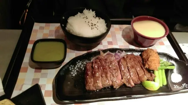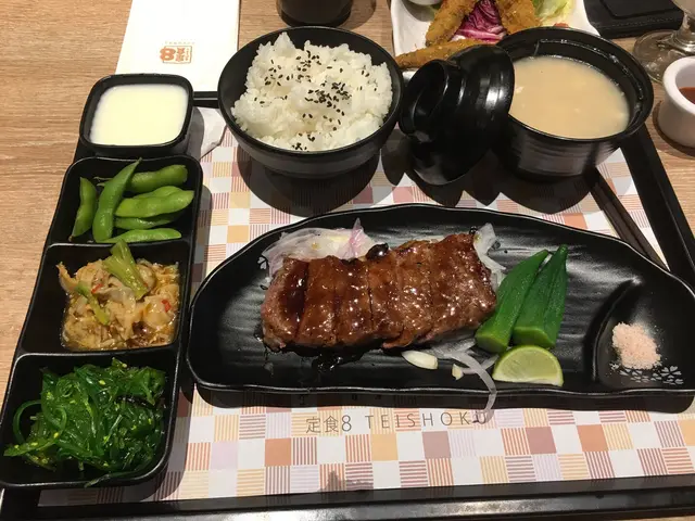 說了最近經常要到荃灣區出沒,一人前的午餐吃個日式定食是個蠻不錯的選擇。因為很多地方都有定食8,小人毅然走了入去,一目偵信,見到不少人吃牛,遂然柯打了一客岩鹽牛排餐。牛的質數當然不及一些名店,但入口不算極度鮮嫩,喜是靭而無筋,肉味香濃,竟還有汁,夠大份夠吃夠飽肚,是個驚喜!同餐還有味噌湯、前菜小碟:中華沙律、芽菜以及日式雜菜之類,皆很入味爽脆,配以牛排的肉汁,都可以做到不差的感覺!要吃一人餐,這兒是不錯的。…ดูเพิ่มเติม