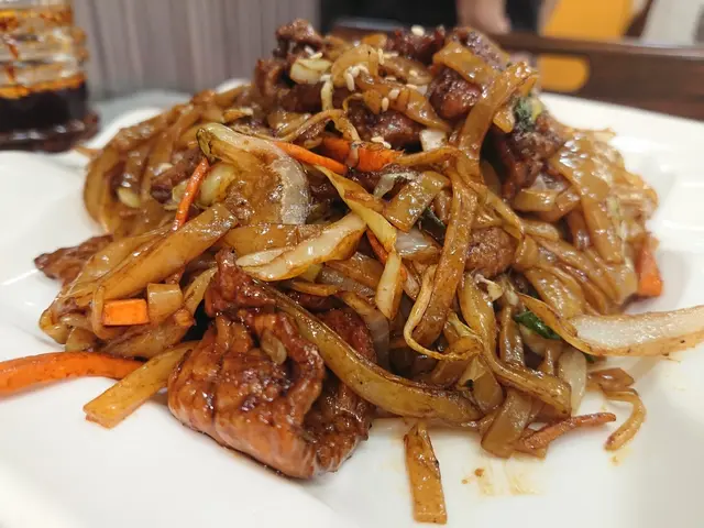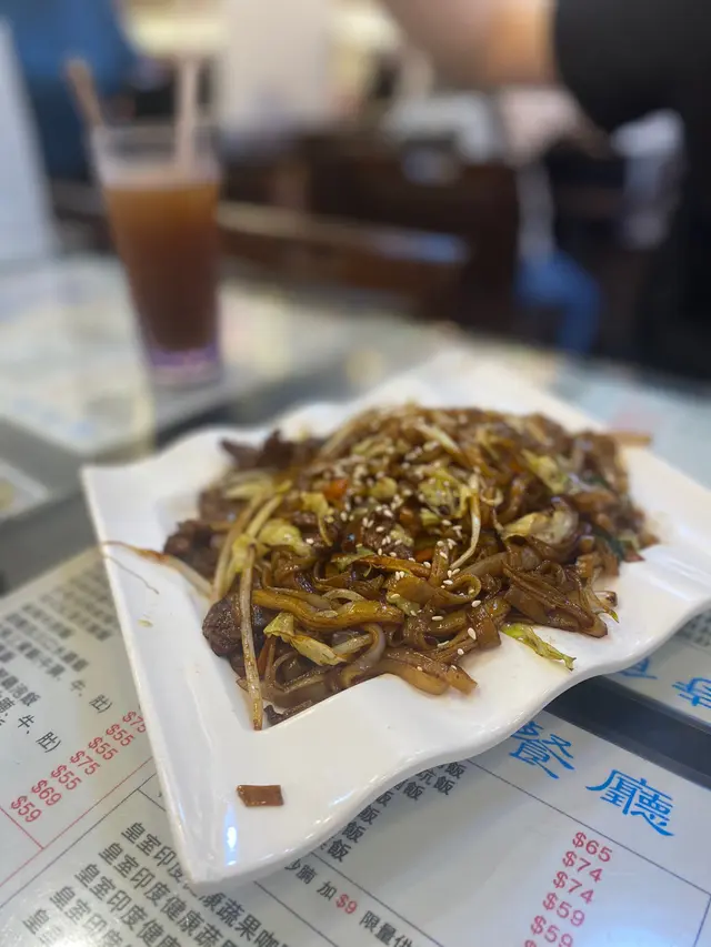 牛肉片唔會韌,口感恰到好處炒得剛剛好一齊嘅配料種類好多,有洋蔥,蔥椰菜絲,韮黃,紅蘿蔔絲同埋少少芽菜令到口感無咁單一食得出碟牛河係即炒所以唔會乾爭爭師傅火候控制得好好唔會炒到碎濕濕川醬乾炒牛河上枱仲係熱辣辣聞到佢嘅香味已經食指大動加埋杯凍飲先至$49坦白講,呢個價錢係即炒,我已經好滿意