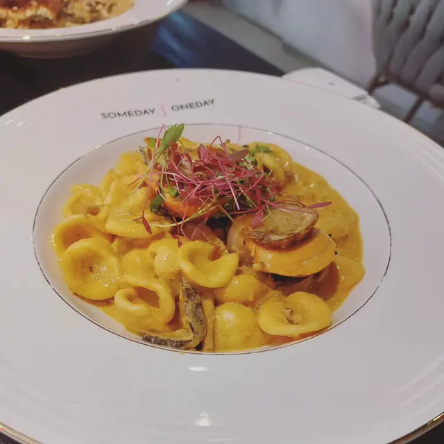 成日覺得佢個名好長😂有啲難記起杏花邨地鐵站出,行入杏花新城,落地面層就會見到本身有lunch set,不過我同朋友想食lunch set以外款式,所以散叫▶️ 帆立貝龍蝦汁貓耳朵 ($98)見多數人都係食貓耳朵粉🐱龍蝦汁味道幾香🦞唔會太杰,比較似湯貓耳朵粉設計好處係可以兜住龍蝦湯入口因為貓耳朵粉偏厚身,食落幾有質感,不過同時亦硬身啲,冇咁有嚼口,我覺得ok鍾意佢煮入洋蔥絲、雜菇、蕃茄粒,令意粉冇咁單調,如果唔係齋意粉好寡)😗上面有三粒帆立貝連裙邊,有啲過熟,口感唔夠鮮嫩多汁,失色少少▶️ 帶子蟹膏蟹肉意大利粉 ($128)價錢最貴嘅意粉選擇,除咗大帶子,仲有大量真蟹肉 (好似吞拿魚碎咁😂)醬料係白汁,偏稀身但黏得住意粉面頭幾啖意粉比較乾身,建議撈勻先食意粉質感正常,唔會過淋🍝帶子比帆立貝口感好啲同樣都有落洋蔥同蘑菇🧅▶️ 草莓白茶 ($36)成壺茶咁上🫖可以倒出來細口細口咁飲上枱已經聞到好香草莓味🍓即使只係用一個茶包,草莓果味足以滲透出嚟飲落甜甜地,茶味溫和,自己幾鍾意▶️ 荔枝梳打 ($34)朋友叫嘅,佢話味道淡,唔會太甜見到入面真係落咗幾粒荔枝-意粉味道一般,貓耳朵粉特別啲飲品用木盤裝住,旁邊放上乾花,適合打卡坐得舒服,周圍好多花花裝飾💐唯一係Cafe唔係喺大型商場入面,平時比較少會特登黎杏花邨食飯服務唔錯,侍應好友善,有禮貌👍🏻Lunch set以cafe價錢算抵食另有旺角分店,睇相好似內在環境再靚啲少女心啲💗唔使走咁遠 (唔使走過十萬八千里都搵到佢😂)…查看更多
