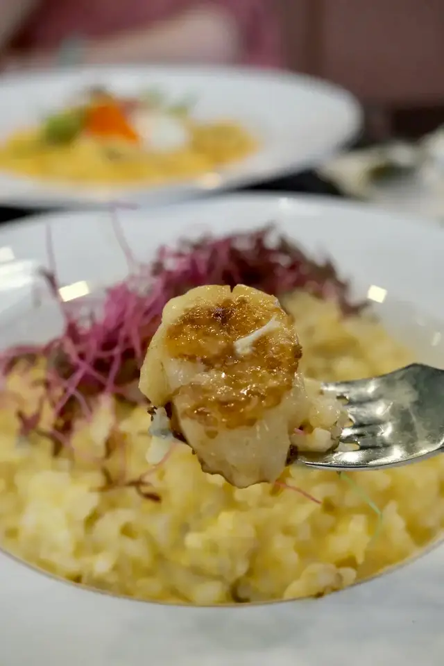近近地嚟到杏花邨,唔使走過十萬八千里,找到呢間花花cafeDinner Set $125椰菜花蘑菇湯帶子蟹膏蟹肉意大利飯鮮雜莓奶昔 +$29好似未試過呢個組合,蘑菇湯好香,飲落食到椰菜花粒粒。帶子煎到微脆面,入面鮮嫩,蟹膏蟹肉意大利飯都唔錯。雜莓奶昔莓味香,質地有少少杰,仲加咗新鮮嘅藍莓。帆立貝龍蝦汁貓耳朵 $98菠蘿芒果奶昔 $58Dinner Set揀唔到,叫咗一款單點嘅,又幾好味喎!龍蝦汁味濃,每粒貓耳朵可以吸到足夠嘅汁,仲加咗雞髀菇條丶菇片,增加多層次口感菠蘿芒果奶昔,芒果味比較重,質感似沙冰多啲,幾好飲臨走先留意到,原來佢哋有賣蛋糕丶鬆餅…查看更多