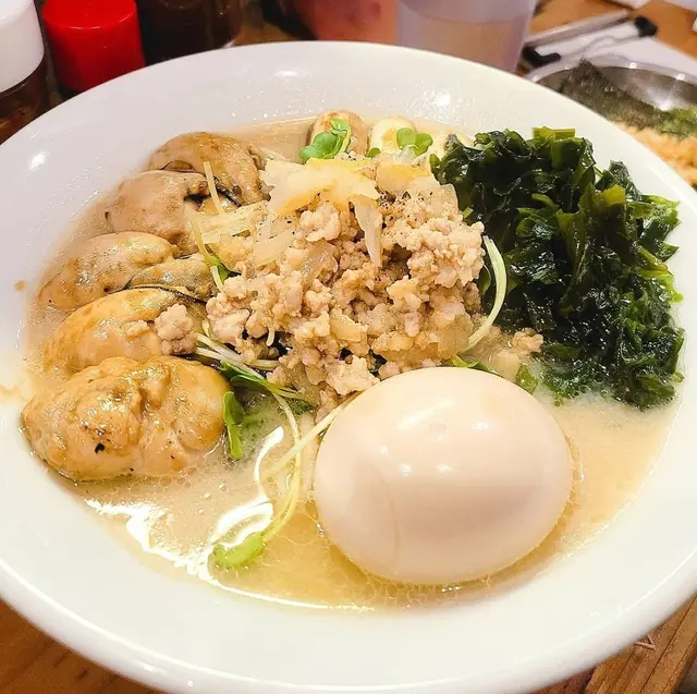 以前的佔了一半湯都唔夠熱😢而且食到中途好油膩所以對沾麵觀感一般.但呢一間的確令小妹改觀🥸分別去左2次而且最近已換上新裝修所以門面係有唔同可以睇返圖10🤓. 餐廳門面好低調.但認人龍就會搵到😂😂.第一次食先發現原來每日提供10碗蠔拉麵🦪決定二訪➿廣島蠔拉麵 [限量]🦪蠔拉麵係海老名限定拉麵.每日大概10碗左右.見到師傅先將蠔煎到金黃.再有煎過既京葱.湯底見到師傅剪碎廣島蠔🦪放入湯底所以食到尾段係會食到蠔肉.每個步驟都用心製作所以等待時間比沾麵耐少少成碗麵材料豐富.蠔肉都飽滿.而且份量都多.湯底蠔味唔算濃郁.因為湯底用左菜同魚去熬製.口味好鮮甜.配料有溏之蛋🥚.肉碎.柚子.海帶同煎香大蔥.食到一半湯底混合配料.湯底更有層次.如果麵底可以選用幼身直面口感會更好🍜➿蝦汁蕃茄沾麵🦐🍅食沾麵好怕會好油膩.所以揀蕃茄蝦汁🍅🦐湯底好濃稠.蝦味都突出.有驚喜.湯底用新鮮蝦同豬骨煮成.食到有酸甜既鮮茄粒.就咁飲都唔會好濟.而配料有兩塊燒叉燒.櫻花蝦,糖心蛋.蔥.醃筍.海老名沾麵各款有附有糖心蛋.煮到好流心🤩幾款麵價錢都唔過$100重有埋溏心蛋.內心默默加分了🥰雖然地方比較逼但流轉量快.唔會排好耐.等麵期間亦提供紫菜同脆脆做小食..➿蝦汁蕃茄沾麵 HKD 99➿廣島蠔拉麵 HKD 128..(.❛ ᴗ ❛.) foodiepoison 👩🍳 整體味道: 8/10 💸 性價比: 9/10 📸 打卡指數: 7/10 🤵🏼 環境服務: 7/10 🤔 推薦指數: 8/10…查看更多