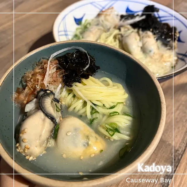 生蠔🦪兵庫相生($78) + 北海道Maruemon($78) + 吉列廣島蠔($78) + 廣島蠔拉麵($128) + + 豚平燒($68) + 明太子忌廉意大利麵($128) + 辛味噌燒飯團($38/@) + 玉子免治雞肉($40/@) + 天婦羅明太子($68) + 芝士薯餅($48) + 牛胸腹肉($58) + 牛舌($38) + 博多”甜王”草莓梳打($48) + 薑味汽水($38) (晚市/另加一) 總店「焼鳥かど屋」位於佐賀駅北口,開過嚟香港嘅分店位於銅鑼灣Tower 535,主打日本蠔🇯🇵🗾一入門口就放咗好多日本唔同產地嘅蠔,好新鮮咁🤤裝潢型格,乾淨,店員有禮貌,服務效率高;揀咗兩款蠔試吓🦪🦪”兵庫相生” 蠔肉幾爽幾甜;”北海道まるえもんMaruemon”,夏旬當造蠔,口感爽脆,海水味重,兩款都creamy好好食,一級讚👍🏻😋廣島蠔拉麵,蠔好肥美煎咗都大大隻,蠔味鮮甜,湯頭清甜,麵質爽口掛湯;吉列廣島蠔,炸得酥而香脆,內裡保持蠔肉本身鮮嫩多汁口感;夏日新品menu☀️明太子忌廉意大利麵,意大利麵煮得偏硬身,濃厚掛身忌廉+明太子,鹹度同奶味平衡;豚平燒蛋味香濃,唔錯;辛味噌燒飯團🍙飯面焦香,鹹鹹地少少辣,簡單實在;玉子免治雞肉,肉汁豐富i like🤤既然叫酒場,梗係有好多唔同款式嘅日本酒🍶見到做緊星期日到四Happy Hour 5-7:30pm 時段,$158 Freeflow暢飲多款指定酒精飲品,包括生啤,清酒,燒酌,威士忌梳打,紅白酒等等,星期五六及公眾假期,Happy Hour 5-7pm,所有杯裝飲品買一送一🍹正喎!總結食物質素高,尤其鐘意食蠔嘅人可以一試🦪🦪🦪…查看更多