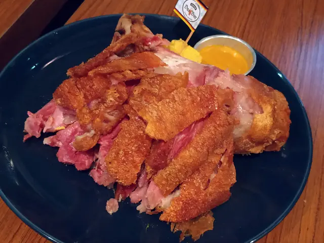,一陣陣黑松露味道,令人急不及待想嘗試一下。食落真的驚喜十足,松露味十足,夠香濃,值得一試。來到德國餐廳,點少得吃鹹豬手?德國鹹豬手配酸菜及薯仔沙律( $218 ),店員已預先把豬手切好方便食用,豬手肉和豬皮是分開的。豬皮烹調得十分香脆,吃落真Crispy!!!