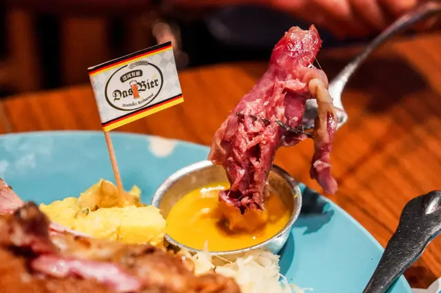 全部相片均由本人親自拍攝,全部原圖! 全部相片均由本人親自拍攝,全部原圖! 全部相片均由本人親自拍攝,全部原圖!全部相片均由本人親自拍攝,全部原圖! 全部相片均由本人親自拍攝,全部原圖! 全部相片均由本人親自拍攝,全部原圖!突然之間想食德國菜,於是相約朋友黎到Das Bier相聚一番。行完奧海城,黎到Das Bier 德國餐廳食晚餐。餐廳十分貼心,為防疫做足準備,設計了電子餐牌,既環保又可減少接觸性傳染風險。睇下餐牌食咩好,我們選了煙三文魚配凱撒沙律( $128 ),德國鹹豬手配酸菜及薯仔沙律( $218 ),德式肉丸燴松露意大利飯( $138 ),可樂( $28 )及Movenpick雪糕( $28 )。天氣熱辣辣,行街行到一身汗,飲番杯可樂透心涼。首先,先上沙律,煙三文魚配凱撒沙律( $128 ),沙律比想像中大份,大大兜份量十足。本來只係諗住叫個小沙律作開胃之用,沒想過這麼大份,真材實料。有足料煙三文魚,沙律菜,麵包,洋蔥同埋番茄,實屬不錯。