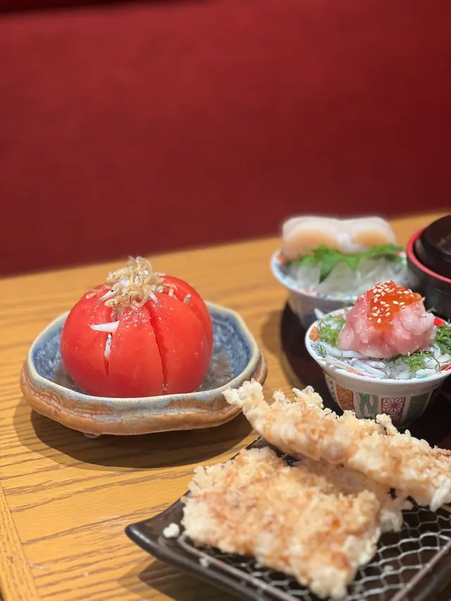 春之四色刺身定食$108德島魩仔魚漬蕃茄$28帶廣名物稀有豚肉丼定食$115茶碗蒸$10煎茶$5咖啡$8好味指數:😋😋😋😋😋抵食指數:💲💲💲💲💲環境舒適:😌😌😌😌環境衛生:🧹🧹🧹🧹🧹服務質素:💁🏼♀️ 💁🏼♀️ 💁🏼♀️ 💁🏼♀️住在港島區的我,好多時都會去太古逛街、睇戲🎬、食飯。喜歡太古有不少餐廳選擇,而且大多在商場內,下雨☔️也不怕。最近一次就去了位於康怡廣場這間來自日本的豚丼專門店-豚丼のぶたはげBUTAHAGE。二人點了2份定食、1份小食、1份茶碗蒸、2杯飲品。春之四色刺身定食和德島魩仔魚漬蕃茄都是季節限定的,供應期至6月3日。四色刺身定食有4碗迷你魚生丼,包括醬油漬吞拿魚配魩仔魚丼、帆立貝丼、醬油漬蛋配木魚絲丼、拖羅蓉海鮮丼。帆立貝厚身又鮮甜。拖羅蓉口感夠綿。醬油漬蛋🥚配木魚絲丼看似簡單,但滿滿木魚香味。魩仔魚味道鮮美。好喜歡一個定食有齊4碗迷你魚生丼,非常適合我這貪心,又有選擇困難症的人。茶碗蒸夠熱又夠滑。白麵豉湯不會過咸。德島魩仔魚漬蕃茄是個非常開胃的小食。一大個蕃茄🍅,切成8等份,酸酸的汁味道好清新,炸魩仔魚好脆口。帶廣名物稀有豚肉丼定食的豚肉燒得好香,但又不會好乾身。白飯粒粒吸滿祖傳秘製燒汁,口感軟糯又有彈性。…查看更多