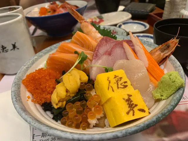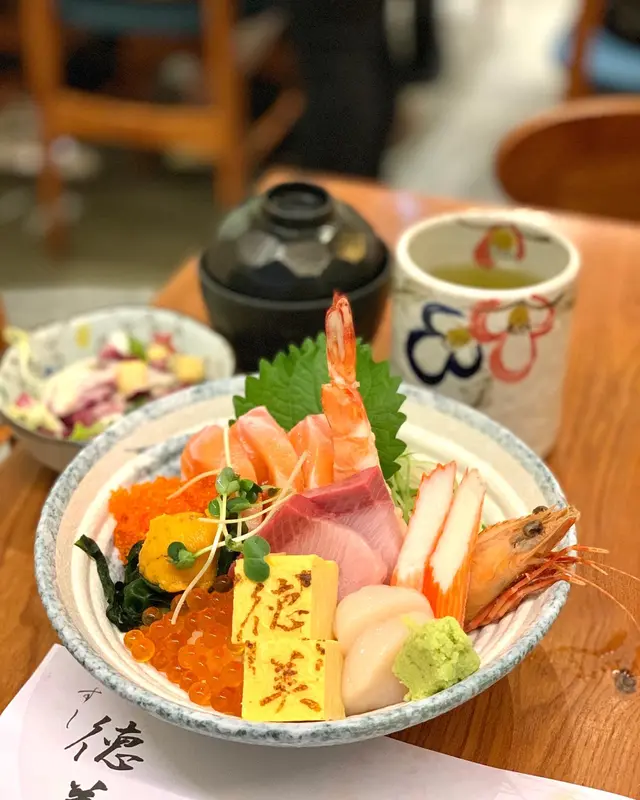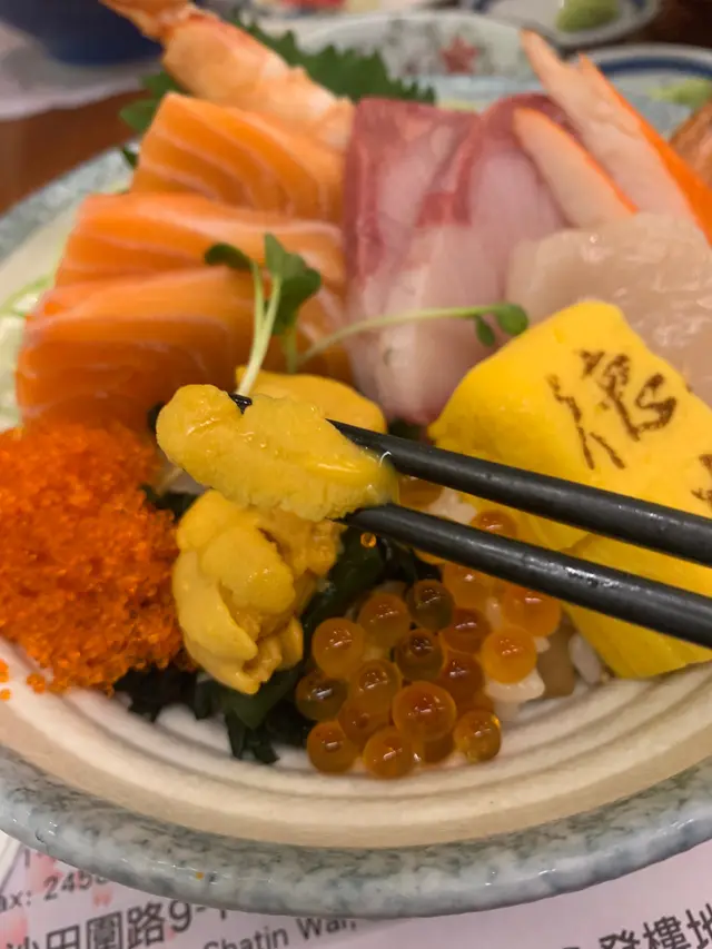 為食之旅第三擊,黎到將軍澳,不過已經過左6點,無得堂食,只能外賣,決定買外賣壽司做晚餐。呢間德美壽司第一次黎,之前去過尖嘴個間兩次,感覺很好。定食有生有熟食,想外賣質素高d梗係揀生野。決定揀一個丼飯再加一客壽司。德美海膽魚生丼 $158丼飯個飯盒好鬼靚,都幾重手。主角之一既海膽有兩塊,鮮甜creamy。其他刺身都好鮮甜,帶子有兩塊,特別鍾意三文魚三大塊厚切同油甘魚兩大塊。少有既熟蝦一大隻,都好鮮甜。蟹柳一條切半。印住店名既玉子兩舊甜甜地,仲有咸鮮爽脆既三文魚籽蟹籽,香脆青瓜絲同白芝麻粒增強口感,連冬菇片都有兩小塊,仲有昆布。值得一提係丼飯原來加左醬油,所以呈啡色,但係唔咸又毋須再加豉油,濕潤好味。定食配湯及沙律,如果堂食仲有甜品。麵豉湯熱辣辣,有昆布,豆腐粒,居然仲有冬瓜片,飲完暖笠笠。沙律好的骰,沙律菜同粟米粒新鮮,上面一小塊煙三文魚鋪面,油香四溢。火炙帆立貝 $42火炙帆立貝壽司一客兩件,未食已經聞到火炙味超香。帆立貝都算厚身,好正。Wasabi放左係個兜一邊。今餐食物質素都幾好,連外賣都食到堂食質素,仲免加一兼九折。外賣盒全部都好實,唔怕漏湯。…查看更多