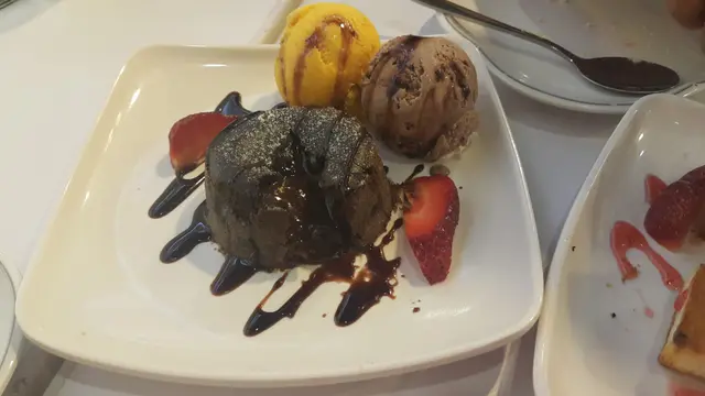 甜品種類都算多,有凍有熱,有中式西式,總會搵到你想食既一款。雖然係叫「放題」,但有部分甜品每人只限每款叫一份,我地一行三人,限叫款式就食左:心太軟可配兩球雪糕,心太軟唔太流心,味道一般比利時窩夫窩夫軟身,易入口,配上吉士醬,味道不錯白雪黃金卷外皮好滑! 又大又甜既芒果肉,加上上層係芒果沙冰,口感一流!