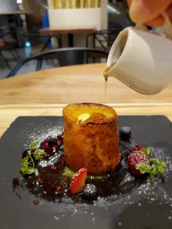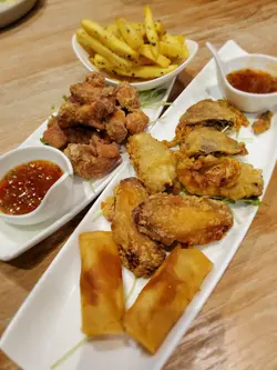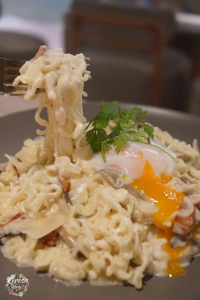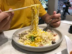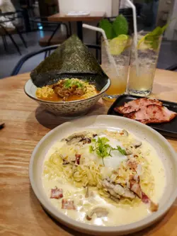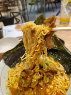 喺朗豪坊搭地鐵必定經過B2層嘅筷趣一町,次次經過都覺得好新奇好想試下,Happy Friday喺旺角見完客梗係順便食埋晚飯。平日嘅六點幾人流唔算多,餐廳座位寬落,空間感十足,半自助式嘅餐廳,點好菜坐埋位等食就得!menu主打即食麵!全部都係麵麵麵!Fusion樣樣都好吸引,最後決定食一個湯麵,一個炒麵!🍝意式卡邦尼即食麵配溫泉蛋🍝 $78 同事一向大愛卡邦尼意粉,所以必點意式卡邦尼即食麵!先講個醬汁非常creamy,奶香同芝士味均勻,香濃而不膩,配上溫泉蛋攪勻後多左蛋香成個麵更滑!配菜仲有勁多煙肉粒同菇粒,食落口感豐富。意粉變左即食麵,估唔到同樣的掛汁,加上即食麵麵質煙韌同香口,好驚喜!推介! 🍜沙嗲牛肉麵🍜 $70(自選一個配菜 +$12 煙豬肉火腿🍖)沙嗲牛肉麵係必點之選!加$12左右可自選類似常餐或車仔麵之類嘅配菜,我揀左比較少見嘅煙豬肉火腿🍖上枱是一刻以為點左一碗拉麵,因為加左一大片紫菜🤣沙嗲牛肉醬汁勁香濃帶點微辣,牛肉肉質軟嫩仲幾淋,配上煮得剛剛好嘅即食麵,爽口彈牙!煙豬肉火腿煎得香口薄脆,抵食又好味!🍤炸小食拼盤🍤 $78 炸小食拼盤有廣島生蠔、軟殼蟹、春卷同雞翼共4款。廣島生蠔炸粉剛好,唔油膩仲有D爆汁!其他炸物都唔錯,配埋特色泰式酸辣醬食更惹味。🍗美式香辣炸雞配帕馬森芝士及黑松露醬薯條🍗 $78炸雞炸至酥脆,雞肉夠juicy帶點微辣份量多,黑松露配上薯條好香口。🥞法式西多士配雜野莓 $68 外觀好靚嘅法式西多士外脆內軟,伴碟有雜莓酸酸甜甜,配埋香甜可口嘅楓糖一齊食更美味! 飲品: 🧃青檸薄荷梳打 $42 同 🍋蜜糖檸檬梳打,清新又唔算太甜~唔錯…查看更多