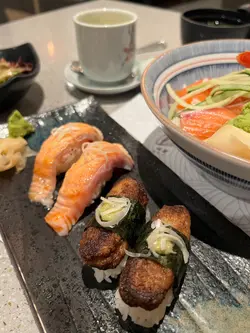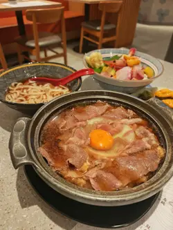 海膽軍艦 ~ 海膽甘甜濃郁,綿密口感。牛舌芯 ~ 厚切爽脆,有嚼勁。牛肋 ~ 惹味軟腍,肥瘦適中。明太子雞翼 ~ 味道咸鮮,啖啖肉好好食。味噌湯、沙律 ~ 跟餐有湯和沙律,味噌湯香濃美味,沙律菜新鮮開胃。安格斯牛肉壽喜鍋、湯烏冬 ~ 天氣一轉冷,就可以食到一個熱辣辣又美味嘅牛肉壽喜鍋,湯底甜甜的,牛肉入口嫩滑,配上湯烏冬,兩者好夾。雜錦角切魚生丼 ~ 雜錦魚生新鮮,選材豐富。雙色雪糕紅豆抹茶凍 ~ 抹茶味濃郁,喜歡抹茶的一定要試下。意式咖啡雪糕 ~ 雲呢拿雪糕配上熱辣辣的espresso,實在太好味!整體價錢親民,服務有禮。