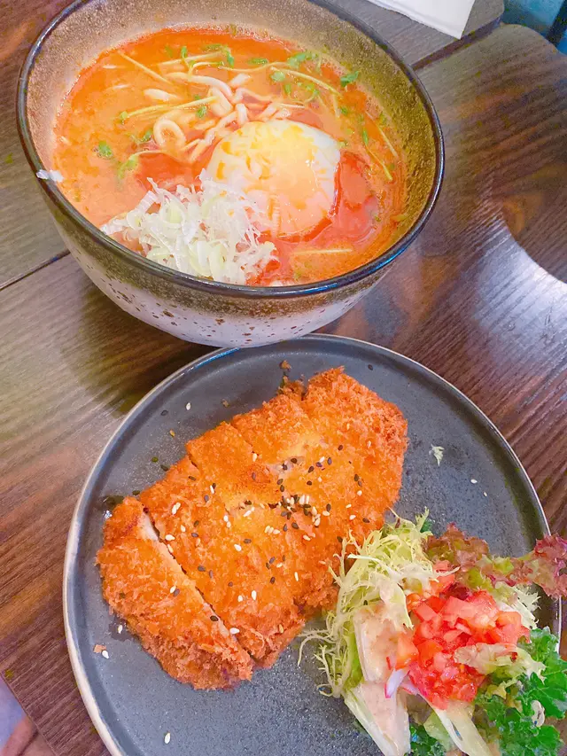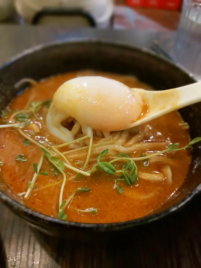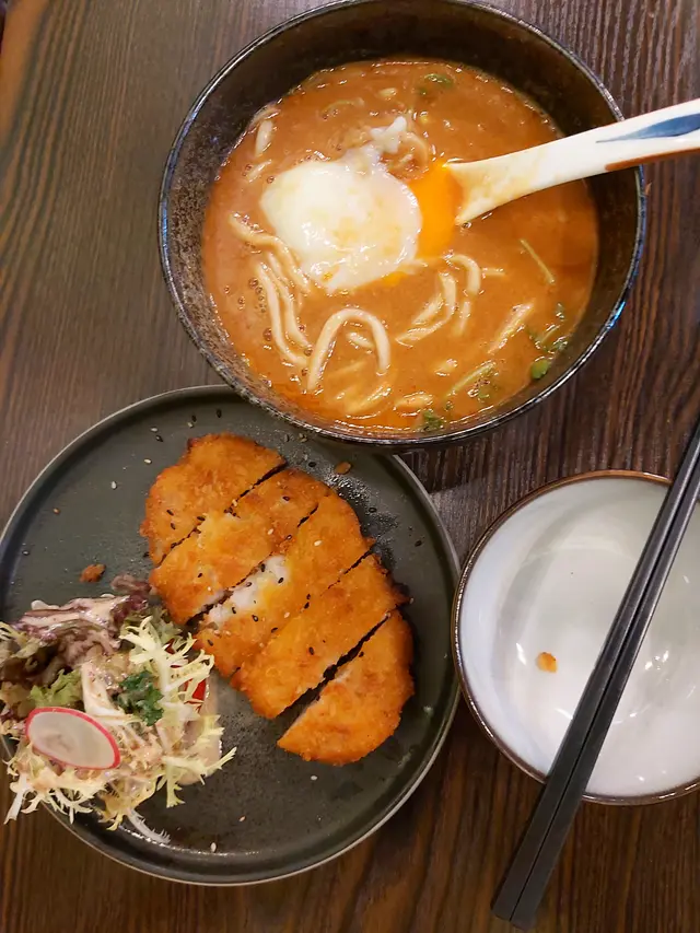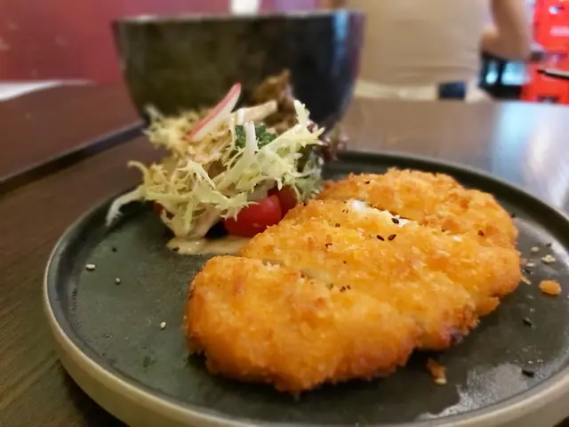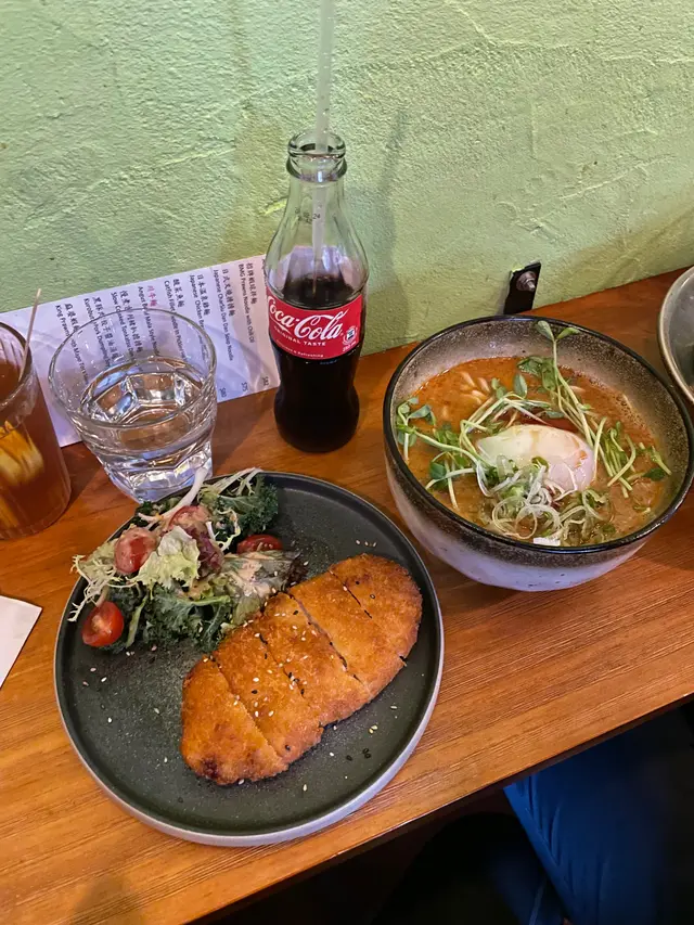 跟住開飯地圖走,揾唔到間店,仲以為摸門釘,原來在轉角斜路上,餐廳店子細細座位唔多,但持續有客人光顧,就知係好野。 點選麵食可以優惠價追加小食及飲品,價錢$5至$40不等,我地追加左好多款。 八珍甜醋雞絲沙律 $35擺盤好西式,感覺食緊西餐,沙律菜新鮮,雞絲肉嫩,配埋八珍甜醋拌住食果然係份外香~一口鮮蝦炸雲吞(4粒) $40雲吞皮好薄好脆口,蝦膠餡料蝦味濃且彈牙,沾上甜酸汁美味,精巧的炸雲吞非常出色,甚有驚喜。龍抄手 (2粒)$15雲吞皮薄滑嘟嘟,雖然底部滿佈紅油同辣椒,但食落唔算好辣,容易入口,$15有兩粒又幾抵喎。 香脆辣子單骨雞翼(4條)$30唔好睇少呢個雞翼,新鮮熱辣炸起,初時食落唔覺辣,但愈食愈麻,好刺激。 慢煮吉列豬扒擔擔麵 $98吉列豬扒香酥脆卜卜,但肉質唔會炸到乾身,擔擔麵湯底杰身濃郁,麵條Q彈,連埋中間隻流心蛋,美味到好似食緊日本沾麵甘。 自家製檸檬薏米水 $10好多薏米夠足料,味道清清地唔甜好解渴。 豆沙鍋餅 $68上碟熱辣辣,豆沙餡軟糯飽滿,正呀!只係稍為外皮硬左少少。…查看更多
