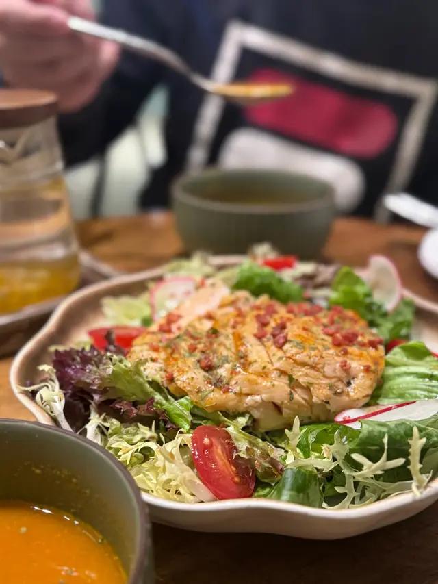 週末約了朋友到賞島咖啡屋聚餐,小店環境舒適,悠閑的氛圍配上美味餐點,渡過了一個美好的午後呢 ♡ 這裡午市套餐價錢已包沙律或餐湯以及飲品,而且午市不收加一,性價比不錯!🔸前菜沙律和餐湯各點了一份試試,沙律新鮮爽脆,而蕃茄湯也很酸甜開胃🔹慢煮雞胸柚子汁沙律雞胸肉拼湊成一朵花賣相很有心思,充滿誠意的擺盤🌹 雞胸肉的肉質一點也不乾柴,煮得很juicy!柚子汁非常清新,健康之選~🔸西京燒比目魚另一主菜點了西京燒比目魚,魚肉很香甜嫩滑,口感細膩🤤 伴菜有沙律、薯蓉和香菇,份量也不少,蠻豐富的🔹飲品套餐包的飲品選擇眾多,有梳打、茶和多款咖啡。我們就點了Yuzu Soda 和Passion Fruit Soda,簡單好喝🔸甜品Daily Dessert 是暖笠笠的焦糖肉桂核桃蛋糕,口感濕潤鬆軟,秋冬品嚐真的充滿節日感覺🎄 味道不會超甜膩很合我的口味,推薦😽…查看更多