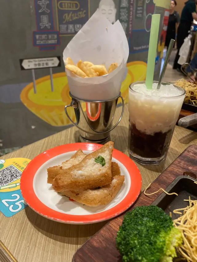 茶餐廳與車仔麵同為香港飲食文化的經典🇭🇰不僅是不少港人的療癒食品,亦是遊客來港必吃的地道美食😇———————————————————————這碗「大碗麵」名副其實,集齊九款車仔麵經典餸菜,每款都份量十足🤩當中最令我驚喜的是沙田店限定的咖喱魷魚🦑質感軟腍嫩滑,完全不是口感像硬膠般的劣質水魷😌其他餸菜如豬腸、豬皮、雞翼等亦煮得入味,同樣高質👍🏻麵底方面選了油麵,口感彈牙,非常滑溜,本人十分滿意😋說起香港特色,鐵板牛扒絕對榜上有名🐮西冷扒重達14安士,外觀厚實,份量驚人🤯肉質方面雖然偏瘦,但口感不會太韌😙配上熱辣辣鐵板,充滿香港特色🥳蝦多士是港式茶餐廳的經典小食🦐現今可說是買少見少🥹這裡的蝦多士炸得金黃鬆化✨蝦膠鮮味,與多士完美融合😃雞翼醃製得十分入味🐔經油炸後雖然稍乾但無可否認是非常香脆,完全是茶記下午茶的味道💥紅豆冰賣相層次分明🫘紅豆份量之多佔了整個杯的一半😂口感綿密,甜度適中👌🏻配合香滑奶茶,充分發揮港式風味的獨特之處😋———————————————————————永年主打的車仔麵質素當然毋庸置疑👍🏻而其他茶記冰室經典美食同樣有質素,足以滿足不同食客的口味需求😄…查看更多