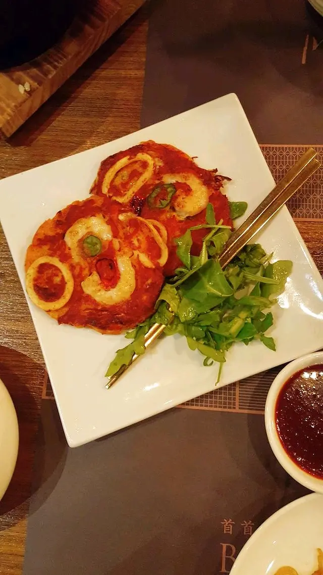 話說今日要OT,兼且撞正落雨天,在灣仔返工的我不想再周圍去,於是就叫早放的另一半搭來灣仔等一等我。幸好,放工時不算好大雨,但既然我倆都在灣仔,那就周圍看看吧。我們出了地鐵站行兩行,另一半話想去囍帖街兜下。殊不知我們在囍帖街在雨中慢步時,旁邊就看見這間首首.韓式小館。首首.韓式小館在囍帖街上真是十分搶眼,有著一塊大大的透明玻璃,令人可以邊食邊看街邊美景。在進場前,我們亦須要看看餐牌先吧,食物款式、價錢在灣仔囍帖街確實是最符合我們的。我們選好食物之後,很快就有前菜奉上,值得一讚。⋮ 1. 手工泡菜海鮮煎餅, $118我們首先點了一份手工泡菜海鮮煎餅來作為前菜。另一半很喜歡吃韓式泡菜,這個泡菜海鮮煎餅肯定能滿足她的要求。開胃的泡菜配上爽口的海鮮,加上煎餅滋味的脆感,入口時可以用熱辣辣香脆脆來形容,儘管亦不是很辣。手工泡菜海鮮煎餅的鬆脆口感認真一流,但如果為這份煎餅再配上一些特製醬汁,那就絕對錦上添花了。⋮ 2. 長泡菜燉穀飼豬肋骨, $138上面已經提過,另一半喜歡泡菜關係,我們之後亦點了這份長泡菜燉穀飼豬肋骨。不說不知,這份穀飼豬肋骨是配以湯汁的形式煮成的,所以在進食之前,我們很自然地要先品嚐一下這個韓式湯底。個人認為這個湯是非常出色,豬肋骨的味道再加上韓式泡菜的辛辣味,十分容易入口。至於豬肋骨,以燉的方式來烹調,絕對令到豬肋骨非常稔甜,可以連骨共同進食。一口湯、一口泡菜、一口肉,絕對值得推薦!⋮ 3. 春川石板辣炒雞肉及年糕, $138這碟春川石板辣炒雞肉及年糕是有廚師推介的,雖然它有3個辣椒仔,但其實不算十分辛辣。重點一提的是,這份辣炒雞肉年糕份量超大,雞肉非常充足,可能足以供3-4人享有。雞肉煮得辣中帶甜,並且加上椰菜和甘筍同炒,整碟菜式變得更吸引;另外,年糕亦需沾滿醬汁,會份外美味。⋮ 4. 韓式石頭鍋米糕伴自家製雲呢嗱雪糕, $68吃到這裡,我們都已經十分飽肚了,那就來個飯後甜品吧。這份韓式石頭鍋米糕伴自家製雲呢嗱雪糕非常之有心思,難怪又是廚師推介的。石頭鍋是熱盪盪的,裡內盛著米糕和雲呢嗱雪糕,下層的米糕的盪熱感再與上層的冰凍雲呢嗱雪糕形成強烈對比,進食時需要小心一點,不要把雪糕都弄溶了,要一口米糕加雪糕一同進食才感受到那種冰和熱的矛盾感。坐落於囍帖街中的首首.韓式小館,的確非常適合在利東街影完相、逛完街的人來食,無論是價錢、味道或是款式都非常適合我們。題外話,我們當天亦看見有不少遊客和外國人,看來這間韓式小館都很有吸引力。…Read More