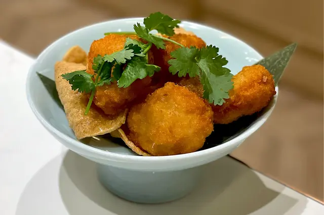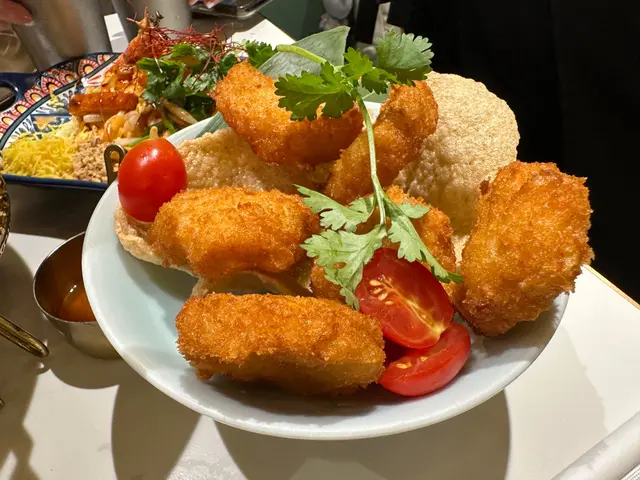 今晚收工遇上落大雨,就同同事去附近荃灣廣場行街食埋飯再返屋企。有一段時間冇嚟,發覺開咗好多新食肆,就好似呢間「摩登堂」,看裝修就跟傳統泰國菜館有大分別,不但沒有艷麗繽紛的裝修,連傳統泰國跳舞公仔也沒有掛牆上,裝潢就以簡潔木系風格,以機械人送餐,我哋就比新派吸引了😂 入座後,見餐牌有些傳統菜式都給予新名字,幾有趣👍之後用QRcode order左幾款至愛餸菜。1-青咖喱雞 $88 咖喱香濃微辣,雞肉嫩滑帶椰香,另有蔬菜配合🥕2-印度烤餅 $38/2件 係即叫即烤,上到枱仲熱辣辣,點埋咖喱汁食超正。餐廳好貼心將烤餅切細片,好方便👍👍3-手打月亮炸蝦餅 $88/6件 6大件,香脆,口感彈牙,還跟幾塊脆蝦片,抵食4-青木瓜海鮮沙律 $98 份量足,海鮮有大蝦🦐鮮魷🦑和青口,味道酸辣適中,刺激味蕾更加開胃🤤5-打拋豬肉生菜包 $88 肉碎咬落唔鞋,有紅蔥頭、辣椒🌶️洋蔥及香料味,炒得香口惹味,用生菜🥬包住一齊食,絕配。6-斑蘭香茅雞油飯 $22 大大碗,充滿香茅香味,說是雞油飯,但一啲都唔油,好好食🍚7-榴槤糯米飯雪糕 $388-十勝紅豆雪糕 $28最後忍唔住食埋甜品作完結😋…查看更多