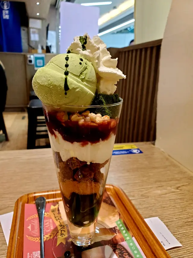 等左3年明天終於出發到大阪!今日要有好多事情要處理好,辛苦過後想食個中式甜品!工業區官塘竟然沒有中式糖水店,唯有去APM揾下。最後揀左日式甜品店【八天堂】。這家甜品店有80多年歷史,品牌創立於1933年,源於廣島。專賣各款口味的忌廉包,出名鬆軟餡料足。除了日本當地,於亞洲幾個地方都有分店。香港只有位於APM 一家分店。食物選擇豐富,熱食有 Pasta 又有日式丼、咖哩、烏冬、菜漬飯。甜品有 cake、pancake、雪糕、牛角包 ……。門面細細估唔到有今多食物選擇。但是,以忌廉包成名的甜品在香港店竟然沒有得賣,真係失望。揀左【抹茶芭菲 $78】賣相好吸引,吸引到身旁的客人望住我個甜品品評。筆者鍾意食日式芭菲因為好多料又多層次。呢個芭菲有十款材料,上面係抹茶雪糕同埋CREAM,但筆者覺得個抹茶雪糕味較淡,有點失望。下一層就有少量紅豆醬、穀片、兩款味道的蛋糕、餅乾碎;最底一層係抹茶涼天,個人覺得係冇咩味。整體而言不過不失。開心 share 下圖呢個筆者上星期在京都【伊藤久右衛門 祇園四条店茶房】吃了的正宗抹茶甜品拼盤。採用時令栗子入饌,限定 9~11月 供應,只需 Y1990!超抵食!  甜品拼盤有一杯抹茶、抹茶味日式蛋卷、抹茶朱古力蛋糕、迷你抹茶芭菲、抹茶雪糕及時令栗子雪糕、栗子蓉大福及抹茶抹茶蕨餅;款款抹茶味 / 栗子味濃郁!  真係好想快 D再去 ~…查看更多