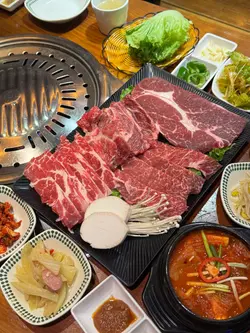 每逢諗起想食韓國野時都一定會醒起去尖沙咀韓國街果邊望下😼咁啱路過見到呢間個牛肉拼盤set好抵食咁就試下~結果都真係幾驚喜‼️好大盤肉肉😻好足料呢set牛肉拼盤真係好性價比!-🐮牛肉拼盤SET A / $560✨拼盤上枱果下真係嘩咗聲!真係一整盤足料肉肉🥩有牛肉眼/牛肋骨肉/肩胛肉/板腱肉 四款肉肉~另外跟set可以自選泡菜湯or 大醬湯🥣最後選了泡菜湯但真的挺辣的🌶️連個湯都係粥料唔食得辣嘅話就揀返大醬湯~基本會有的韓國前菜小碟~-🍜拌冷麵 / $90✨很涼爽的一碗冷麵🧊只有一點點微辣,麵條很煙韌~很喜歡冰涼的酸酸冷麵汁拌底,非常惹味~而且可以解油膩。如果兩個人去食叫一set拼盤,再加個麵食都已經好足夠~唔食烤肉的話,還有其他的韓食類的如炸雞🍗雪濃湯🥣部隊鍋🍲馬鈴薯排骨鍋🥔等等…查看更多