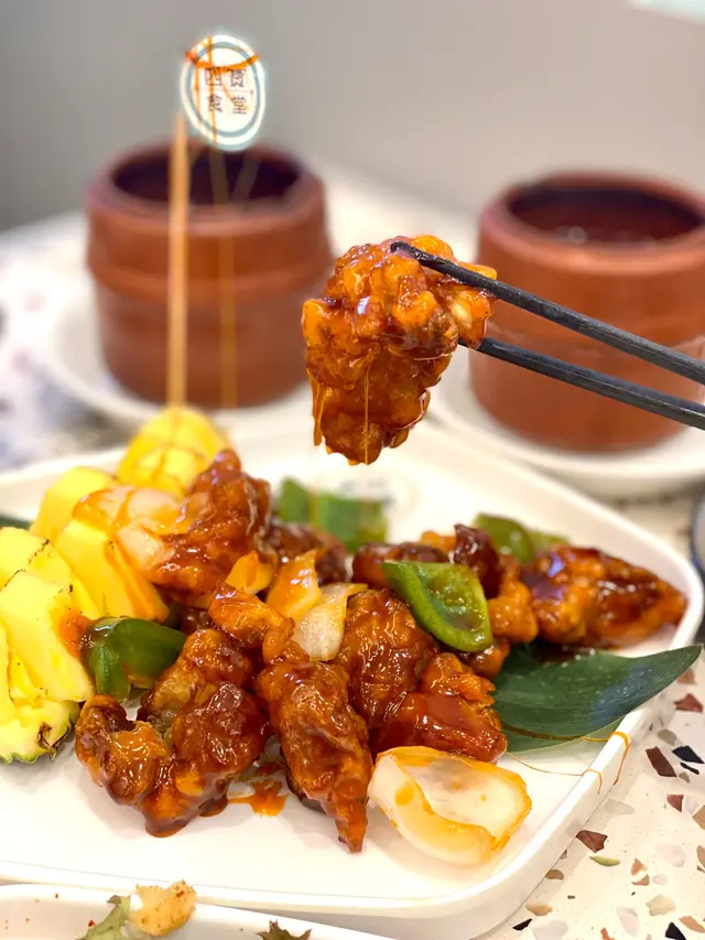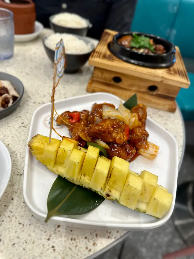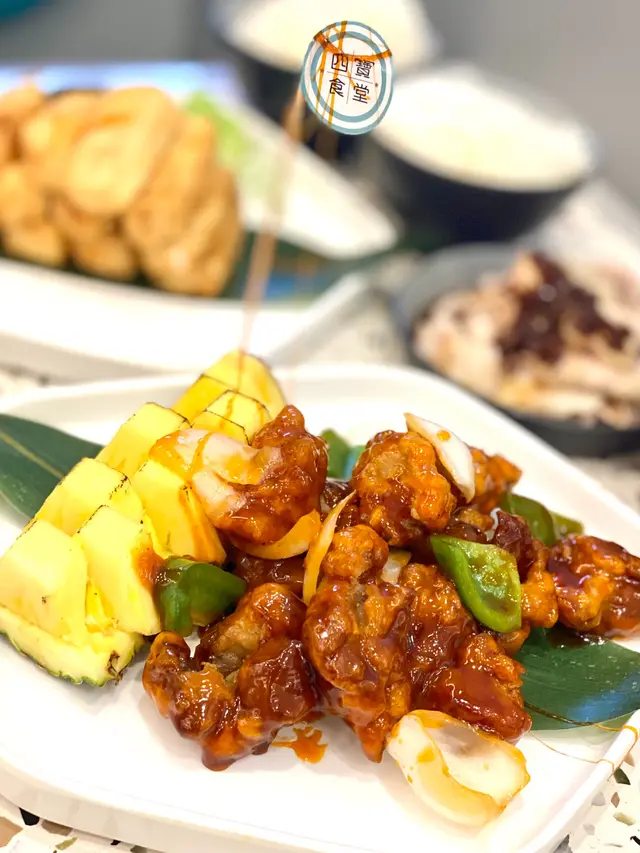 四寶食堂喺將軍澳開咗新分店,湖水藍色嘅門面,加上喺商場裏面,感覺光猛舒適,係新式嘅茶餐廳格局🍴加上門口menu都幾吸引,食物選擇繁多,唔怪得過哂晚飯時間都大排長龍、座無虛席啦!🥳🥘湖南土匪鮑魚雞煲+每天精選養生燉湯+米飯 ($108)呢款菜式上菜嘅時候熱辣辣🔥嗞嗞聲,有種好似仲喺個鑊到炒緊嘅感覺,相當夠鑊氣!每件雞食落都好嫩滑,帶湖南四川嘅麻辣香味,撈飯一流!鮑魚足足有三粒,燜得好腍好入味,再配埋雞煲醬汁一齊食勁惹味呀😍🥣養生燉湯是日係雪梨蟲草花瘦肉燉湯,味道清甜、非常足料,天氣咁凍真係要飲返碗滋潤下😋🍍拔絲山渣汁菠蘿咕嚕西班牙黑豚肉 ($98)呢款小菜加$28都可以轉餐,同樣有燉湯同白飯;咕嚕肉每一塊都大大件,份量十足👍🏻咬落去好鬆脆,外層沾滿咗酸酸甜甜嘅山楂汁,非常開胃!山渣汁仲多到可以玩埋拉絲🤣🤣菠蘿切成船嘅造型上碟,整得幾精緻✨而且用咗新鮮菠蘿,食落味道係天然甜味,一啲都唔酸,超juicy呀!🐥拔道腩水門雞(半隻) ($88)雞件色澤分明,啖啖肉好嫩滑;雞皮亦爽滑唔肥膩,配埋佢嘅甜豉油同秘製醬汁一齊食,好惹味😍🫘雪山紅豆冰 ($28)一杯好經典嘅港式飲品,紅豆味濃而且份量好足夠,配埋忌廉都唔會太甜~🍇巨峰提子氣泡茶 ($28)名義上係巨峰提子,但飲落味道幾似利賓納🤣不過係有氣版嘅利賓納!總結:呢到有多款新穎特色小菜,碟碟都份量十足有水準,而且上菜速度都幾快,坐得舒服,以後又多一個飯堂喇😆推介!…查看更多