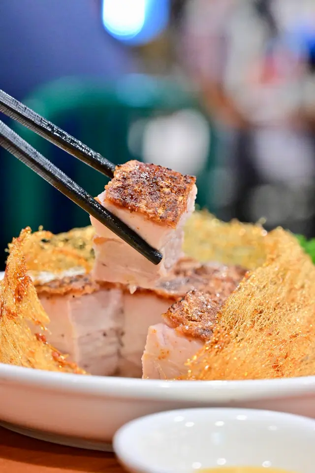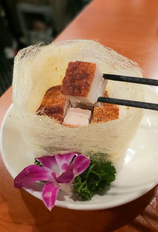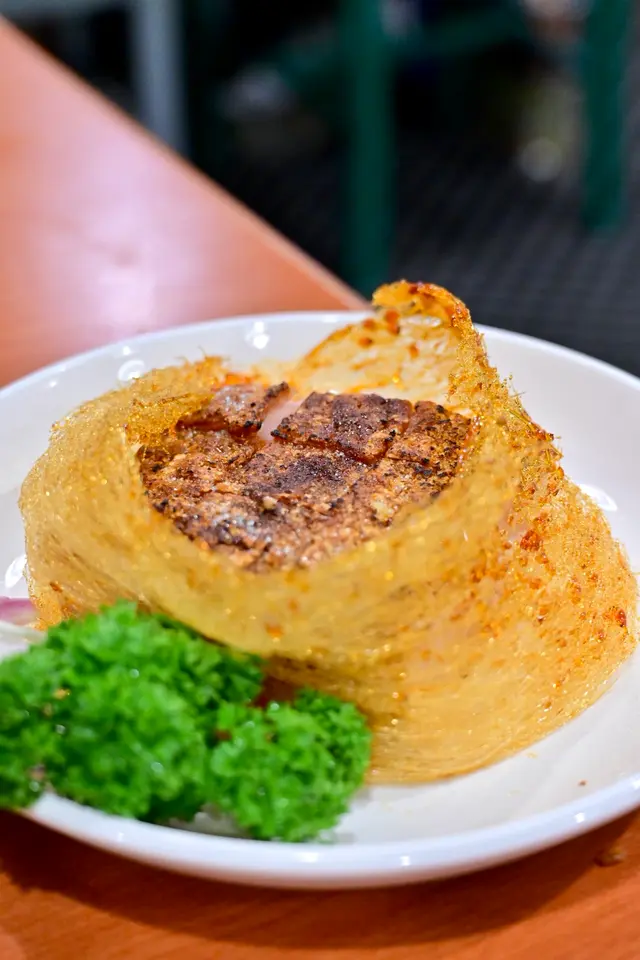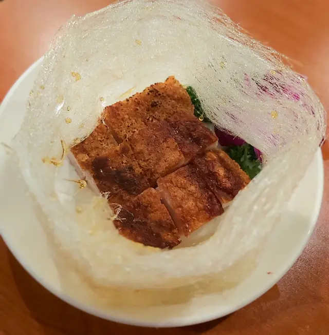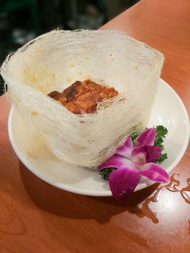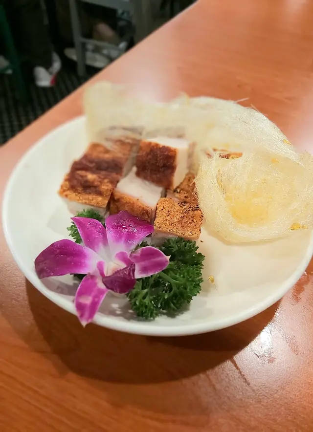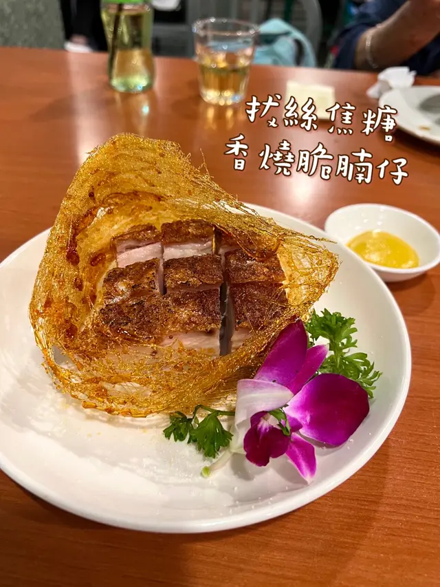 餐廳門前擺放了自家製熱飲,讓等位的顧客暖心。內部裝修充滿老香港情懷,舊海報、霓虹招牌、綠色鐵閘等,播放著80年代粵語金曲,充滿懷舊氣氛。餐牌上很多創意經典粵菜,選擇非常多。「蜜椒薯仔牛柳粒」新鮮炒起,熱辣辣送上,香氣四溢。材料有薯仔粒、青椒、洋蔥、牛柳粒等。牛柳粒腍軟味濃,薯仔粒煎得香口,再掛上甜甜蜜汁,非常惹味。「拔絲焦糖香燒脆腩仔」賣相別緻:燒腩仔用拔絲糖膠圍起來,如一個雀巢。燒腩仔皮脆肉嫩,肉汁豐富,雙重口感。配上甜絲絲的糖膠,又把燒肉味道提升一個層次。「咕嚕雞球」雞肉去骨,啖啖肉,外皮酥脆,酸甜芡汁味道適中,送飯最合宜。「竹蔗茅根紅蘿蔔馬蹄水」自家用老火淆製的馬蹄水,真材實料,味道天然,清甜降火。最後還有糖水“綠豆爽”和”紅豆沙’’奉送。這裏的菜式夠鑊氣,兼有創意。在懷舊金曲下享用了一頓美味菜餚。…查看更多