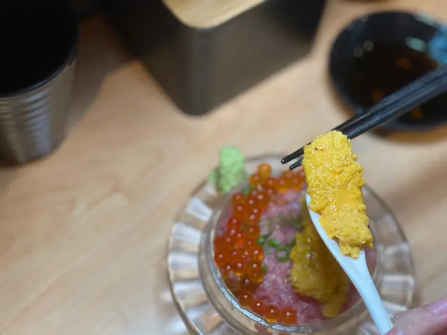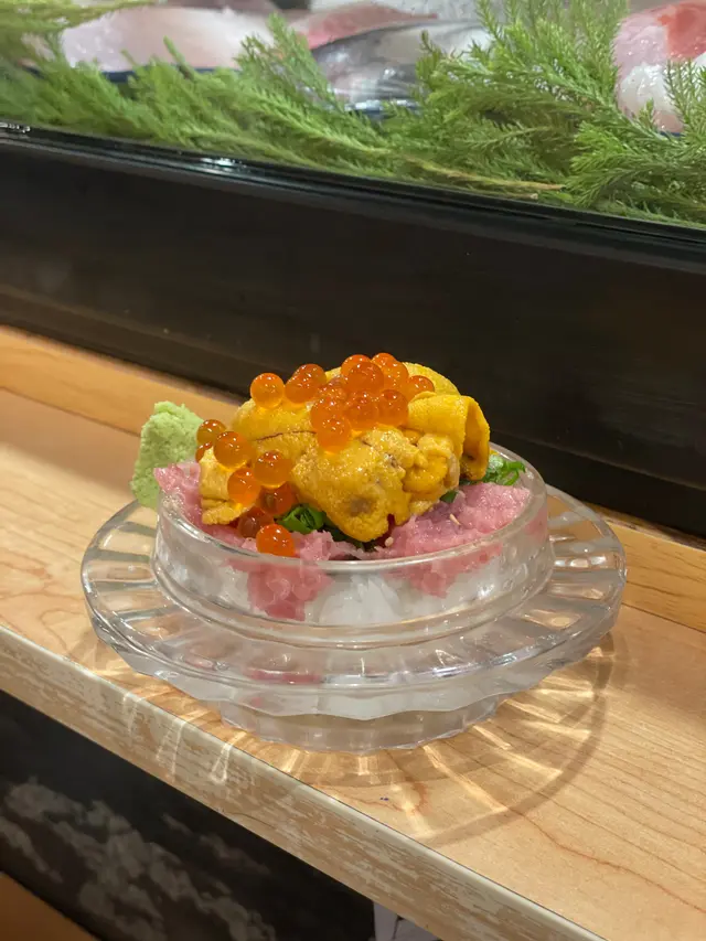 之前有朋友食呢間立食壽司話都唔錯,但呢日我入到去發現原來係有十幾張凳可以坐,唔知係咪最近先加座位定咩呢🤭▪️特上壽司盛盒(6.5/10)💲250呢個壽司盛盒既刺身同壽司飯之間全部本身有Wasabi,所以自己唔駛額外蘸,壽司飯亦都有幾香既醋味,而且無鬆散😛1️⃣ 炙燒金線鯛:炙燒香還好既,不過炙燒既話始終都係三文魚同埋左口魚既魚油脂會更為豐富🙈2️⃣ 帶子:呢度既係比較軟身 3️⃣ 牡丹蝦:肉質都幾彈牙,可以一戰4️⃣ 海膽:見其他人話海膽唔錯,但我既就未算係好鮮甜🤔5️⃣ 三文魚籽:粒粒都好飽滿,陣陣鹹香😍6️⃣ 拖羅:唔係好肥美入口即溶嗰種,不過質感尚算軟滑7️⃣ 油甘魚:有少少筋位8️⃣ 真鯛:質感會緊緻9️⃣🔟 池魚、深海池魚:爽口結實,有蔥同埋薑蓉一貫配搭▪️拖羅海膽杯 (7/10)💲138面頭既三文魚籽仍然係好大粒有鹹香質素唔錯,海膽同上地唔算特別新鮮,拖羅蓉會係有好微微火炙過既香味,亦有加入香蔥調味,入口綿滑完全無筋,底下係一碗仔既壽司飯😋▪️ 三文魚生菜包(7/10)💲38生菜依然脆身,火炙過嘅三文魚,有住層魚油,加上左蔥花同埋日式芝麻醬,整體油膩感唔高,唔駛蘸野都夠味☺️🔎 整體評分(7/10)…查看更多
