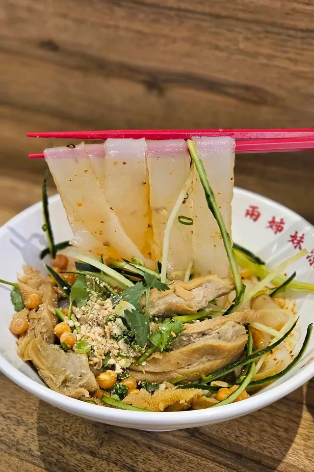 本身不是涼皮愛好者,品嚐涼皮的次數屈指可數,今晚終於抱着戰戰兢兢的心情一試。叫了《招牌兩姊妹涼皮》少辣,和《重慶小面》BB辣配櫻花蝦和炙燒鹹香豬五花。套餐組合叫了蒜泥白肉。合共大約$140。涼皮的體驗不錯,口感,溫度和味道協調非常和諧。值得一試。重慶小面配上櫻花蝦和豬五花的整體味道則偏鹹,份量適中,第一口豬五花非常Surprised,湯底調味也適中,但整碗吃完後就覺得味道有點單調了。蒜泥白肉是真材實料健康的味道,比三哥或譚仔的厚身一點。整體而言值得一試,是正常的好味。除非有天特別想起這味道,否則再吃的機會不大吧。…查看更多