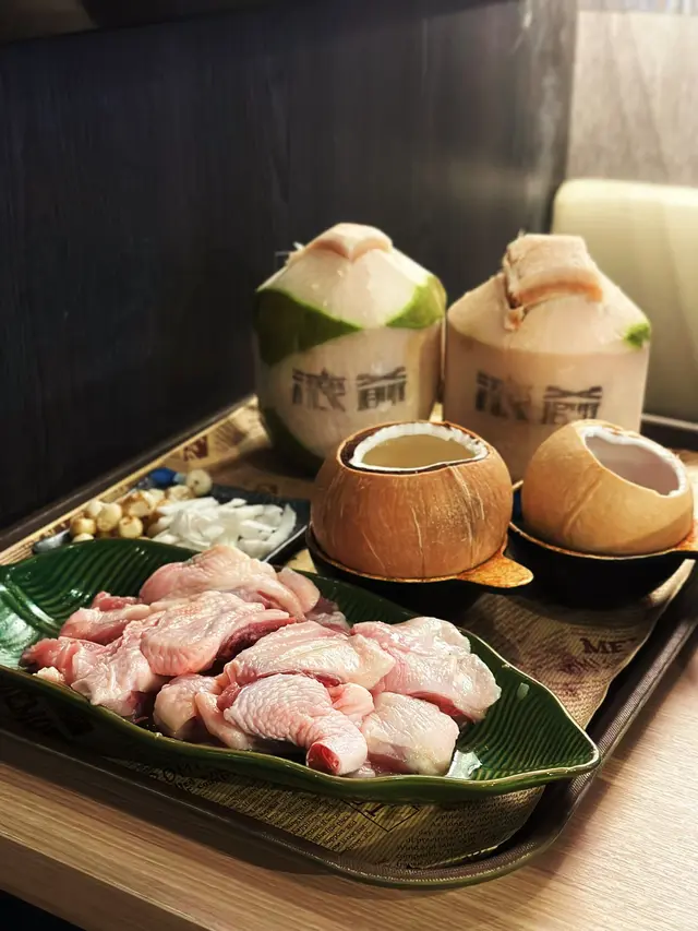 天氣凍冰冰,一定係打邊爐最啱😆食完暖笠笠向來鍾意椰椰嘅我今次食咗一間招牌係椰子雞嘅湯底火鍋🥰打邊爐之前食晒煲椰子雞先,依間用新鮮嘅椰青椰皇即開加埋迷你馬蹄同椰肉倒落去做湯底清甜度滿滿😍雞有半隻,肉質彈牙嫩滑。店員姐姐會幫你計時嗌你夠鐘食哂雞同飲左湯先再掉豬骨湯加落去打邊爐😆 我哋仲嗌左👇🏻嚟打邊爐🍲美國安格斯板腱豬八戒拼盤(豬潤/豬腰/豬粉腸/豚肉片)脆鯇魚片手包鮮蝦雲吞即炸紫菜響鈴⬅️打邊爐點可以冇整體食材都好新鮮,脆鯇魚片爽脆鮮甜🥰豬八戒拼盤造型好抵死😂豚肉片厚薄適中豬內臟S都好好味🤤口感一流~牛板腱油脂分布平均,口感柔軟滑嫩,油香牛味都好平均🥰依度仲要開到凌晨㗎😆咁就唔怕深宵總是餓喇~…查看更多
