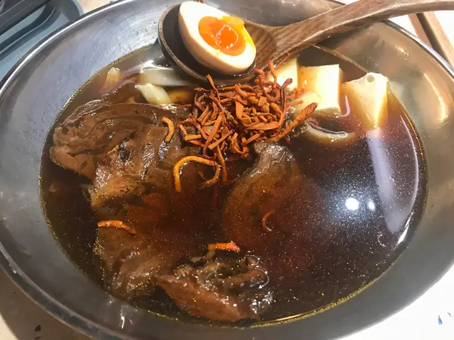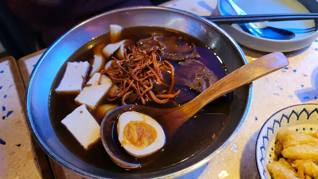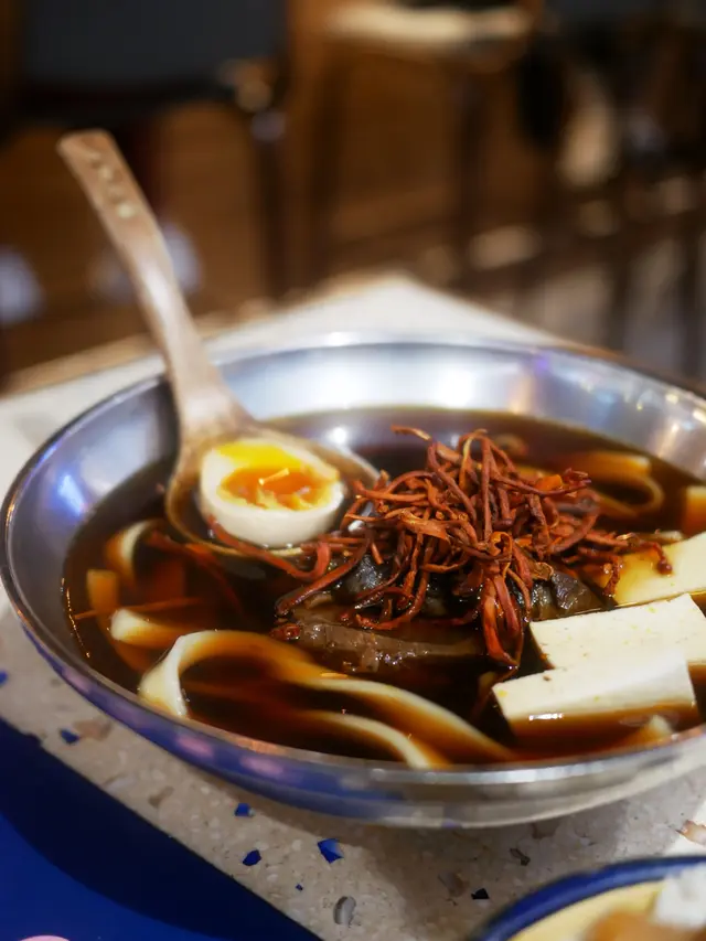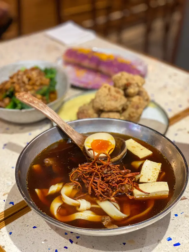 每次經過中環都會見到呢間人氣台灣料理大排長龍,難得今次經過見到佢有空位即刻入去試吓佢究竟有幾好食😋佢嘅裝修風格同一般嘅台灣料理店好唔同,唔係走懷舊嘅台灣風,係有少少新派比較Modern嘅裝修,見到佢喱度既客人大部分都係一d年輕嘅客人或者外國人嚟食,中環分店個空間唔算好大,數埋都係得十張枱,難怪經常大排長龍招牌牛肉麵 $108佢個濃湯幾特別,帶有微微嘅藥材味再加好香濃嘅牛肉味,幾好食既,牛肉都炆到好淋,幾有台灣古早味嘅感覺,不過價錢就真係幾貴,性價比唔高,亦說不上好特別可以一試滷肉飯反而有驚喜,滷肉炆到好入味,肥嫩多汁,細細碗當個小食都唔錯!髒髒芋泥鹹蛋黃蛋餅佢個蛋餅好好食好有驚喜,冇諗過台式蛋餅可以做出一個甜品,佢個外層係用咗麻薯去包住,中間係雞蛋,入面就係芋泥,配埋一齊食落口好煙韌,紫薯控既朋友必食!佢喺個紫薯粉上面再加咗少少煉奶,令到成個口感好豐富,好有創意,好特別好好食,而且賣相一流,係打卡必點嘅創意料理!😋…查看更多