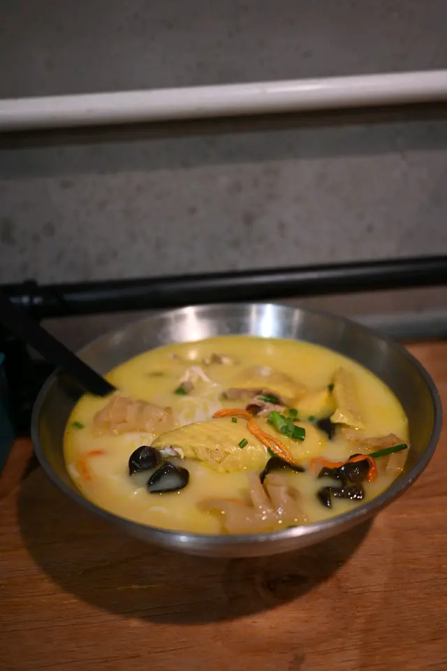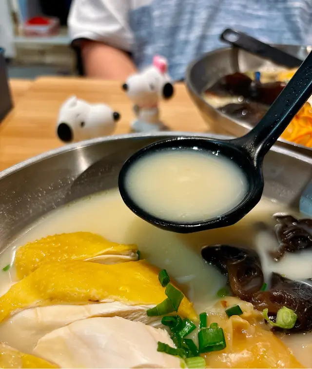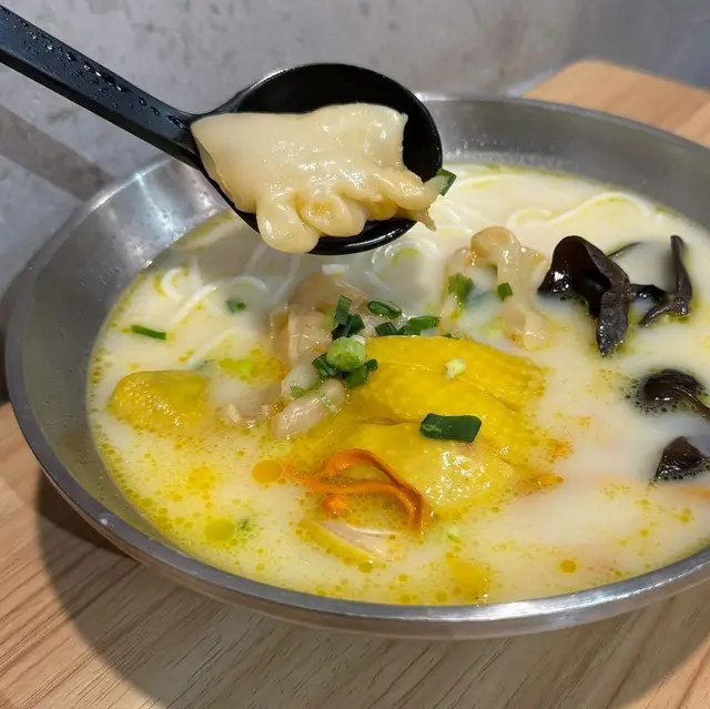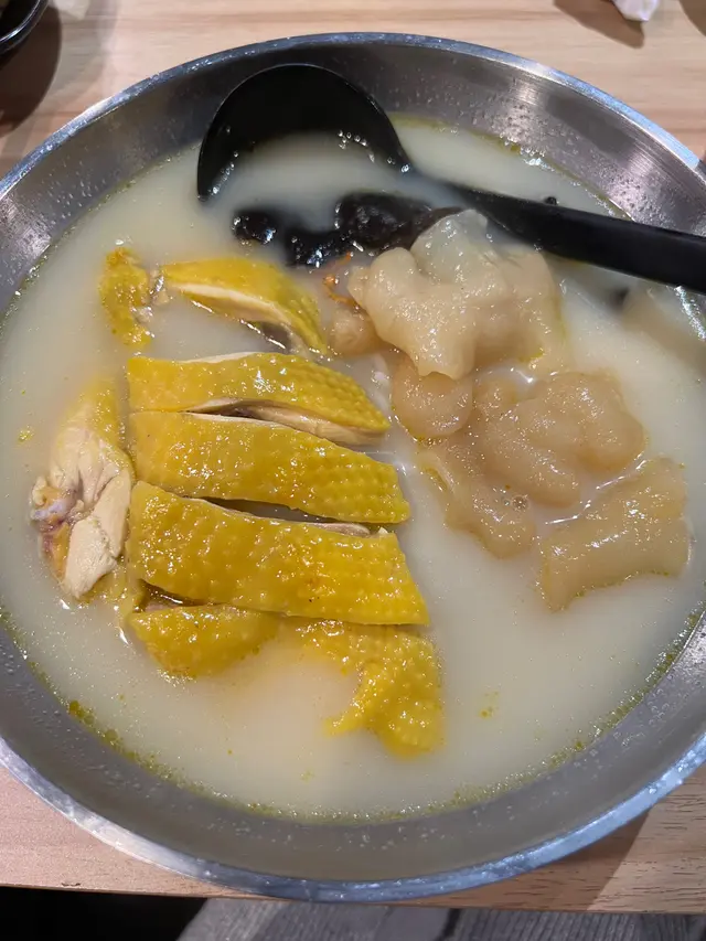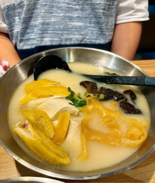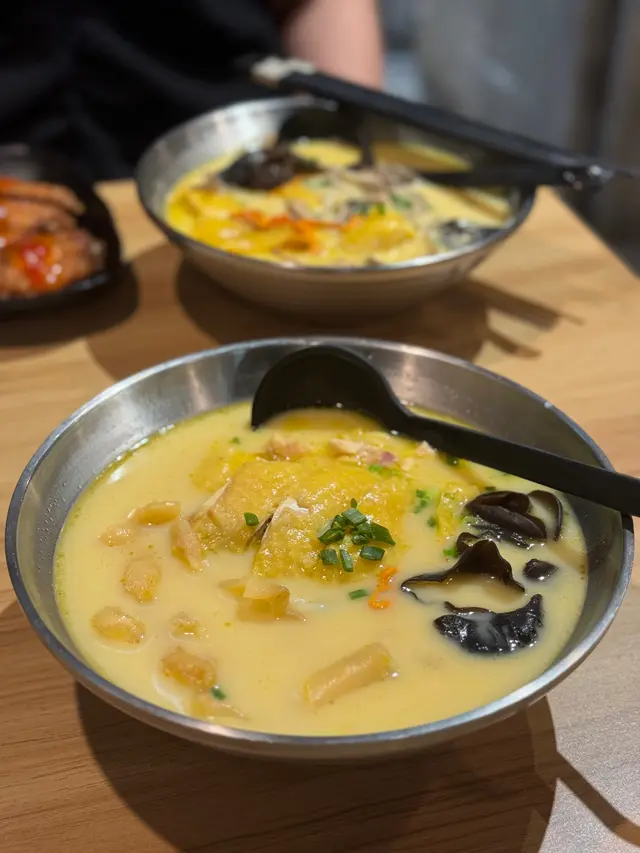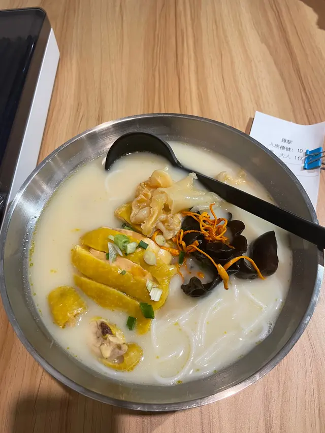 係觀塘放工諗住去呢間餐廳食,點知超多人排隊😮 都排咗半個鐘先入到,但可以食到佢招牌嘅花膠雞米線真係值得✨🤩🔸 招牌花膠雞米線 ($68)佢嘅份量好足,尤其是花膠又大舊又多又腍😍 雞肉都幾多,而且好嫩滑,唔會太多脂肪👍🏻 仲有一舊雞腿😍 米線個質感啱啱好,有咬口唔會太腍❤️ 個湯底好重雞味🐓 真係真材實料,價錢又唔貴😎🔸 藥膳黃酒花膠雞米線 ($68)雞肉同花膠份量一樣都係好多💛 最特別係個湯底,藥膳味十足👍🏻 感覺好補好暖身🔥 仲配埋紅棗、杞子等等,幾足料✨💕🔸 麻藥蛋 ($28)抱住一個試下嘅心態點呢個小食,點知都幾得意😮 食落去好香嘅麻油香味,配上蔥、芝麻,都幾香口但唔會好重口味🫶🏻 重點係個蛋黃好流心💛🤩整體而言,咁嘅價錢可以食到花膠+雞,性價比超高😍🩷 好適合係冬天食返碗暖下身🍜…查看更多