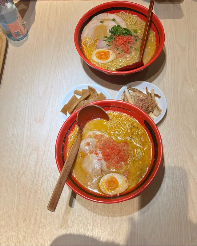 同男朋友叫咗個二人Set有前菜x2、主食x2、小食x1加drinks x2。我哋叫咗兩碗招牌,都幾濃蝦味。拉麵包咗叉燒、溏心蛋,仲有啲櫻花蝦做topping。都係啲基本配置,不過不失啦!主要係都多discount,性價比算係咁。…查看更多