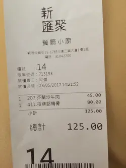 , 因為佢地的小炒真係無得頂, 因為人流多, 海鮮亦會好新鮮。而且又唔駛加一好吸引。今晚同朋友聚舊揀左新匯聚餐廳小廚, 記得記得一定要訂位, 因為小店經常客滿, 我地準時入座, 因為太早所以暫時未有太多人, 仲可以坐到卡位。冬天就有出名羊腩煲及臘味糯米飯, 不過得2個人好難食到咁大份量, 所以都係叫小菜。我地今次叫左 :*招牌話梅骨 $115*芥末脆鯇魚片 $135*啫啫通菜 (改唐生菜) $88* 蘋果雪梨水 $20* 白飯 $18*椰汁馬荳糕 (免費)等食期間, 都係會見到熟口熟面的伙計, 好多食客都係熟客, 一入黎就已經傾晒計, 好溫馨, 而且職員會好熱心介紹熱門小炒, 新鮮到貨的海鮮。