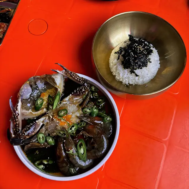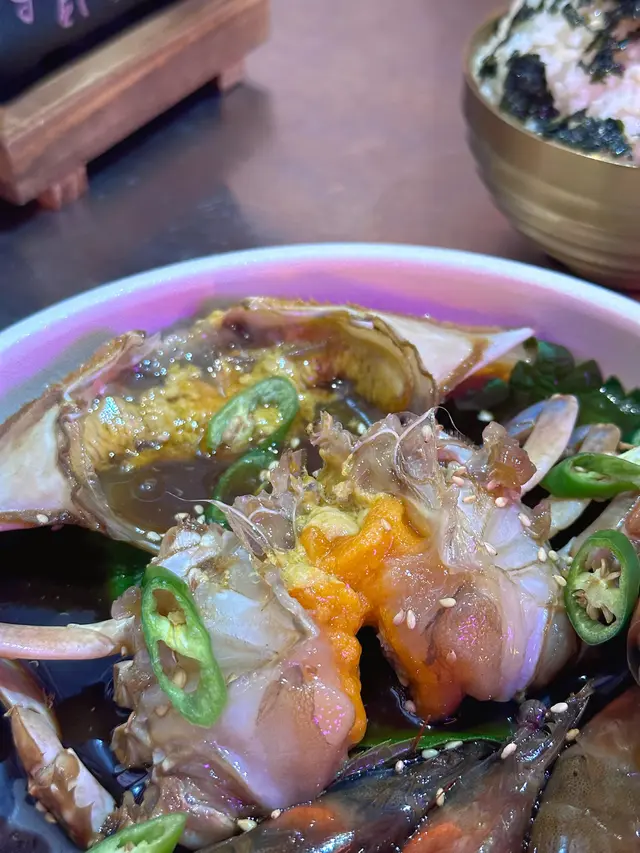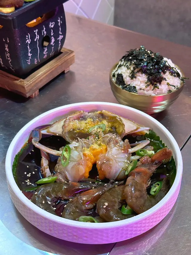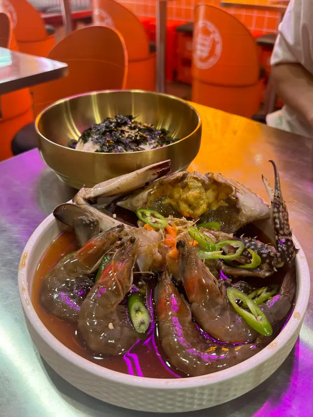 難得嚟到元朗經過雞地見到有一間韓國餐廳外面望落去有啲韓劇路邊街頭小店嘅嘅感覺完全還原韓國地道味道!♡̴招牌醬油蟹拼盤配麻油紫菜飯蟹身充滿住滿滿蟹膏蟹肉入口即化而蝦好彈牙加上調味剛剛好唔會太鹹將蟹膏醬汁同埋蝦加入紫菜拌飯超正超級送飯 !😋😋同埋價錢幾抵食平時出去食都最少三百幾蚊依家有一隻蟹四隻蝦同埋一個紫菜飯招牌炸雞(半分)(甜辣)炸雞肉質嫰滑雖然外皮好脆但略嫌外皮太厚半份都大約有6-7件左右味道都有啲偏甜辣味唔夠整體我唔係特別太鍾意…查看更多