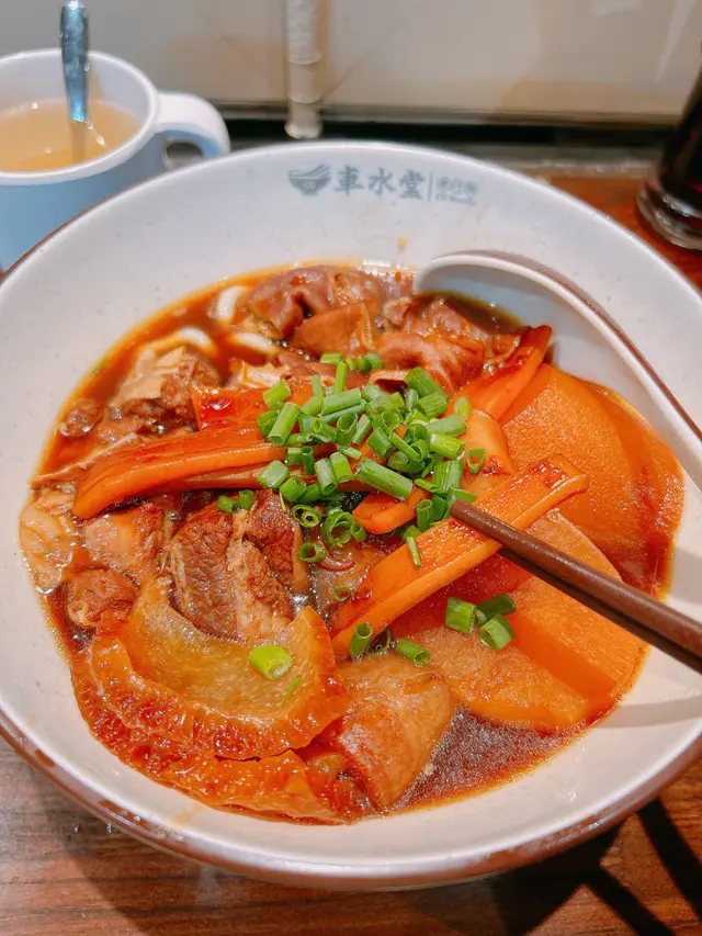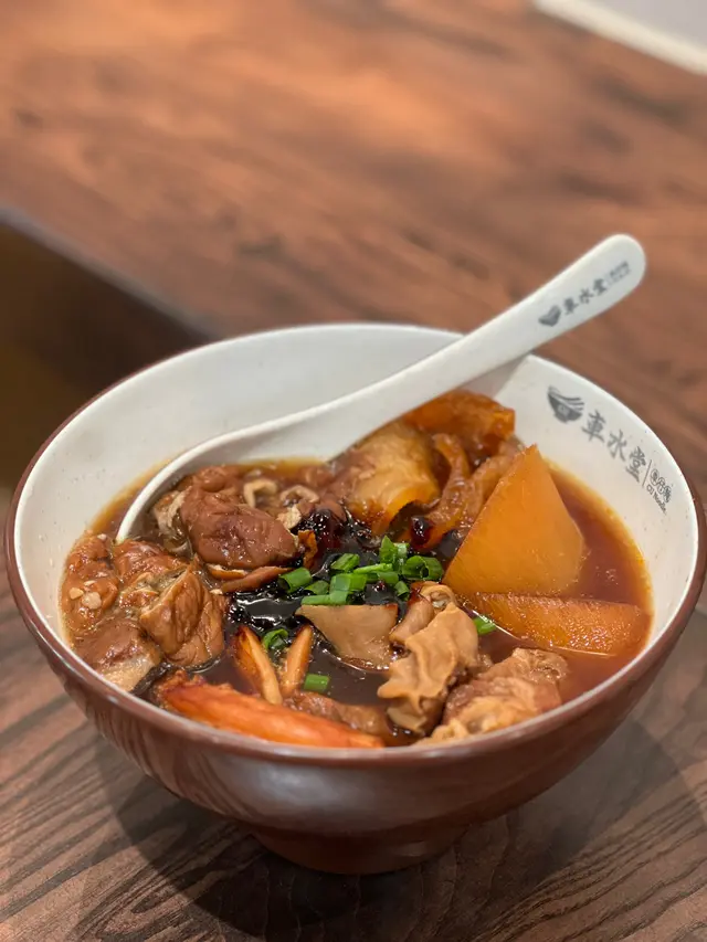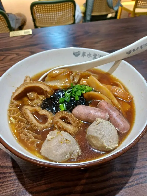 星期六約左朋友做運動, 之後去左中環街市行左一陣, 係附近搵左一間餐廳食車仔麵。我哋叫左招牌麵, 包括辣魷魚, 鹵水豬腸, 豬皮, 牛腩和蘿蔔, 魷魚爽口彈牙, 配合特製辣醬汁, 十分惹味。蘿蔔炆得好軟腍, 清甜入味, 完全冇渣。牛腩軟滑煮得幾入味,。我哋另外叫左一個五餸麵, 金錢肚鹵得好入味, 食落爽口有嚼勁, 台灣黑椒腸外皮好脆, 黑椒味突出我哋叫左兩款小食, 麻辣鴨血食落嫩滑冇腥味, 麻辣牛柏葉爽脆可口。我哋最後叫左豆漿, 少甜可解辣。 …查看更多